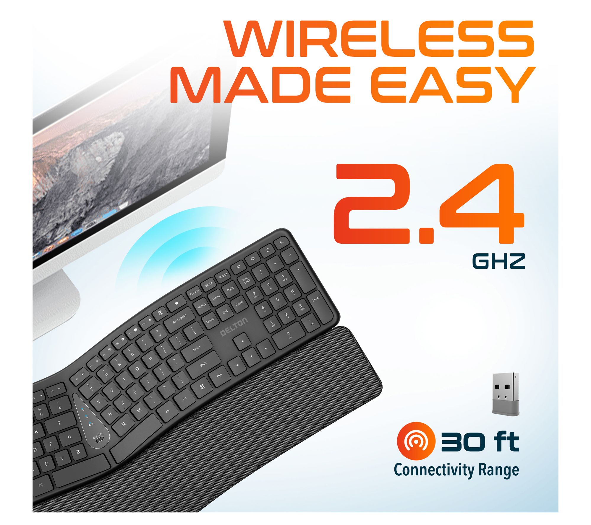 Delton KB250 Wireless Ergonomic Full Sized Keyboard