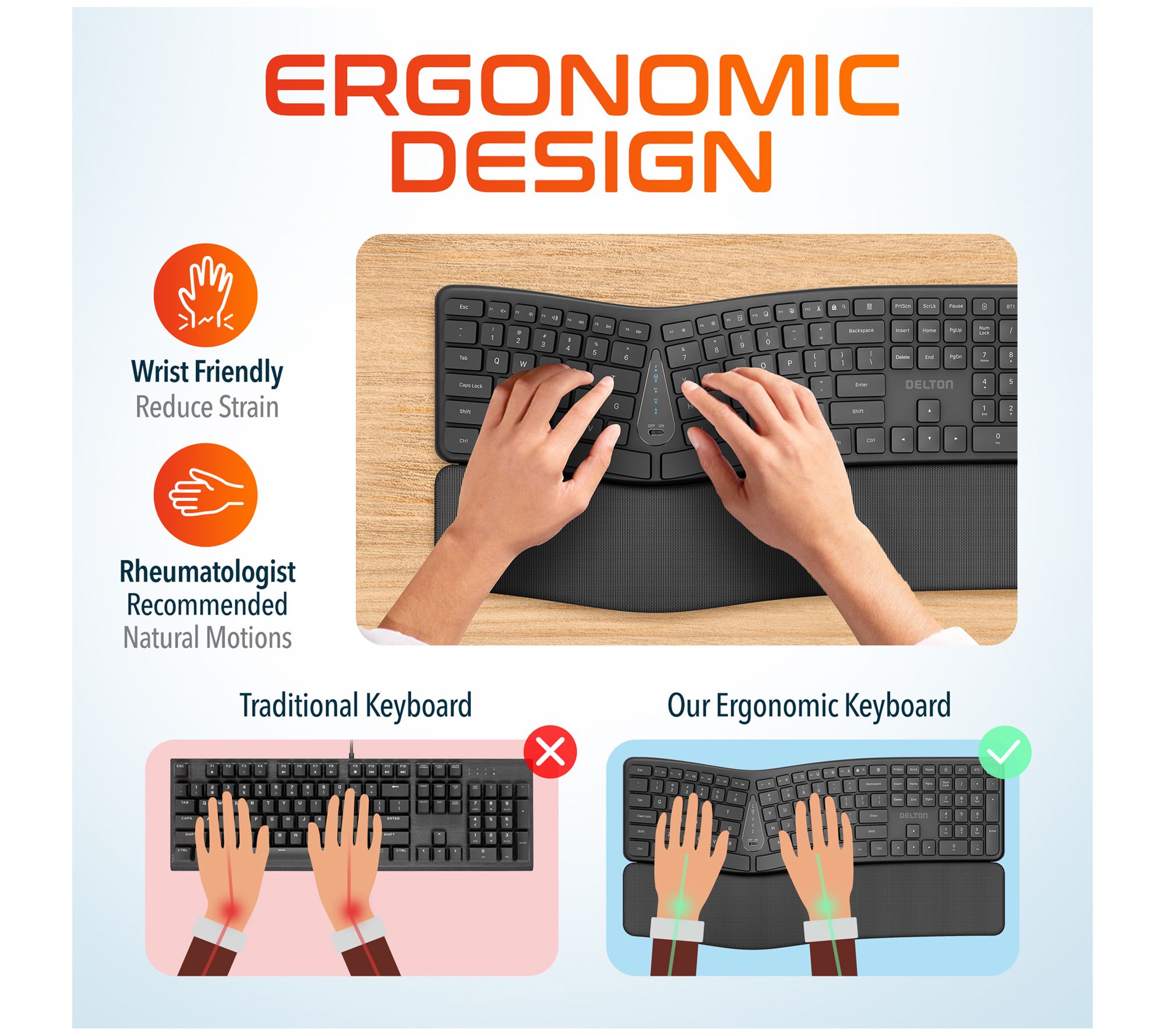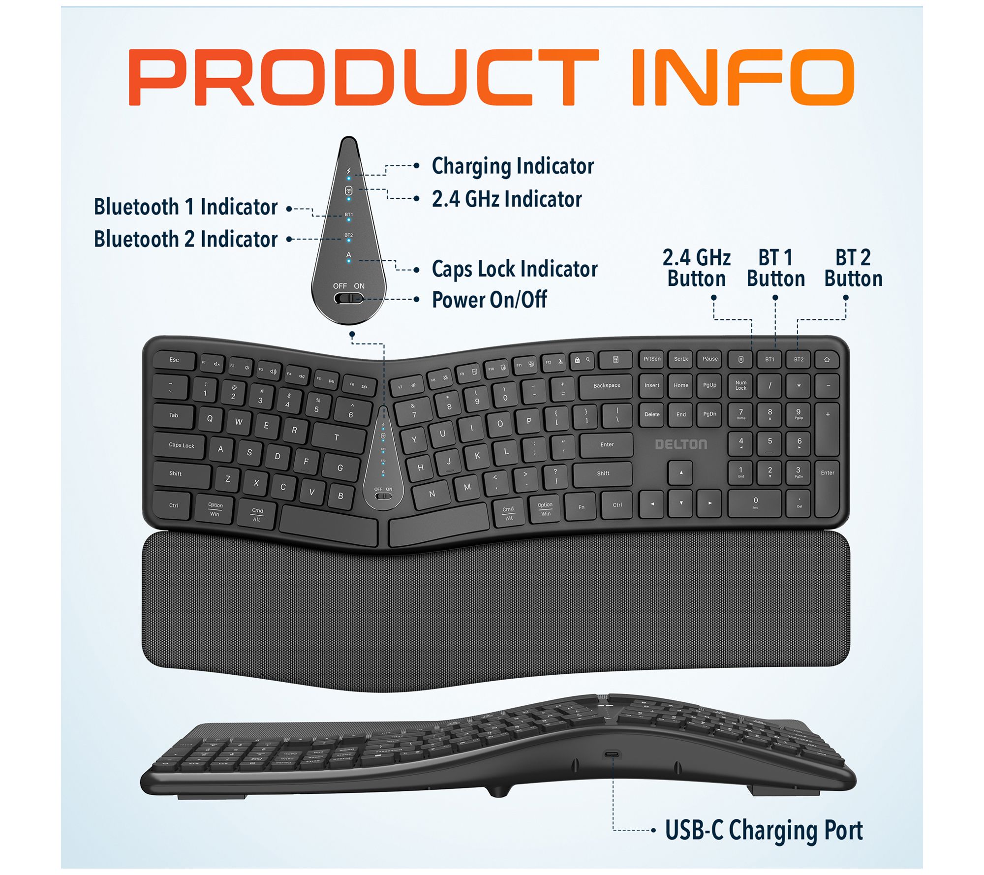 Delton KB250 Wireless Rechargeable Ergonomic Keyboard