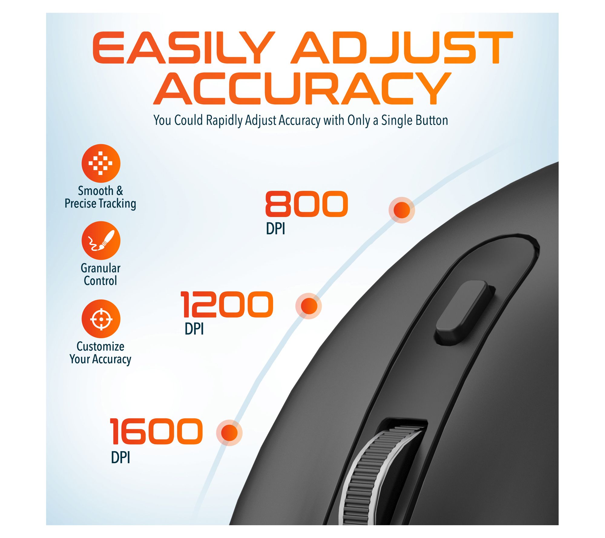 • Adjustable DPI levels: 800, 1200, 1600
