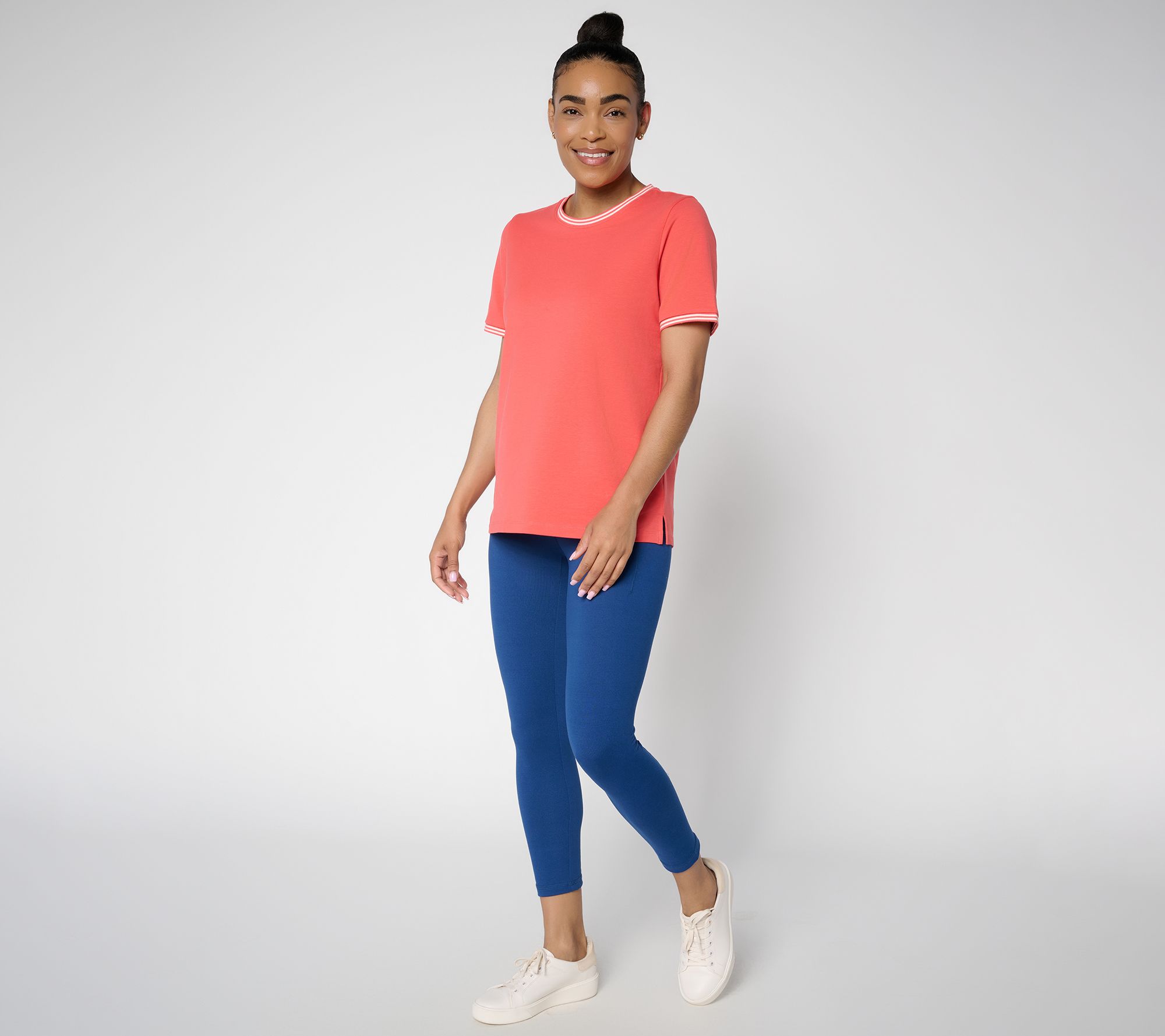 Whether you're embarking on a morning walk or a shopping run, this French Terry knit top easily keeps pace with your day (because active is a lifestyle). The elbow-length sleeves feature a sporty ribbed finish, while side slits at the hem offer comfort and laid-back style for all your casual adventures. From Denim & Co.® Fashions.