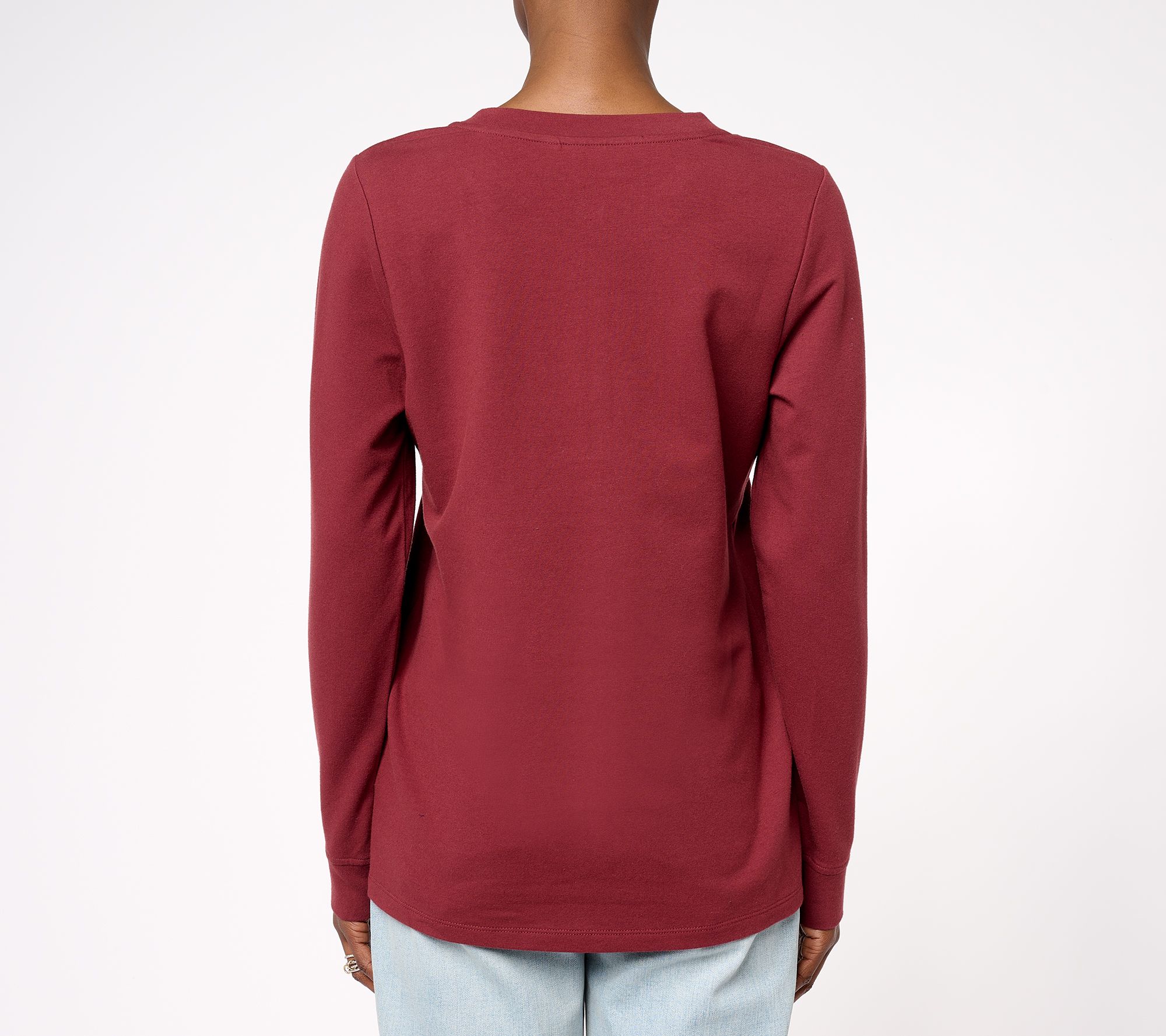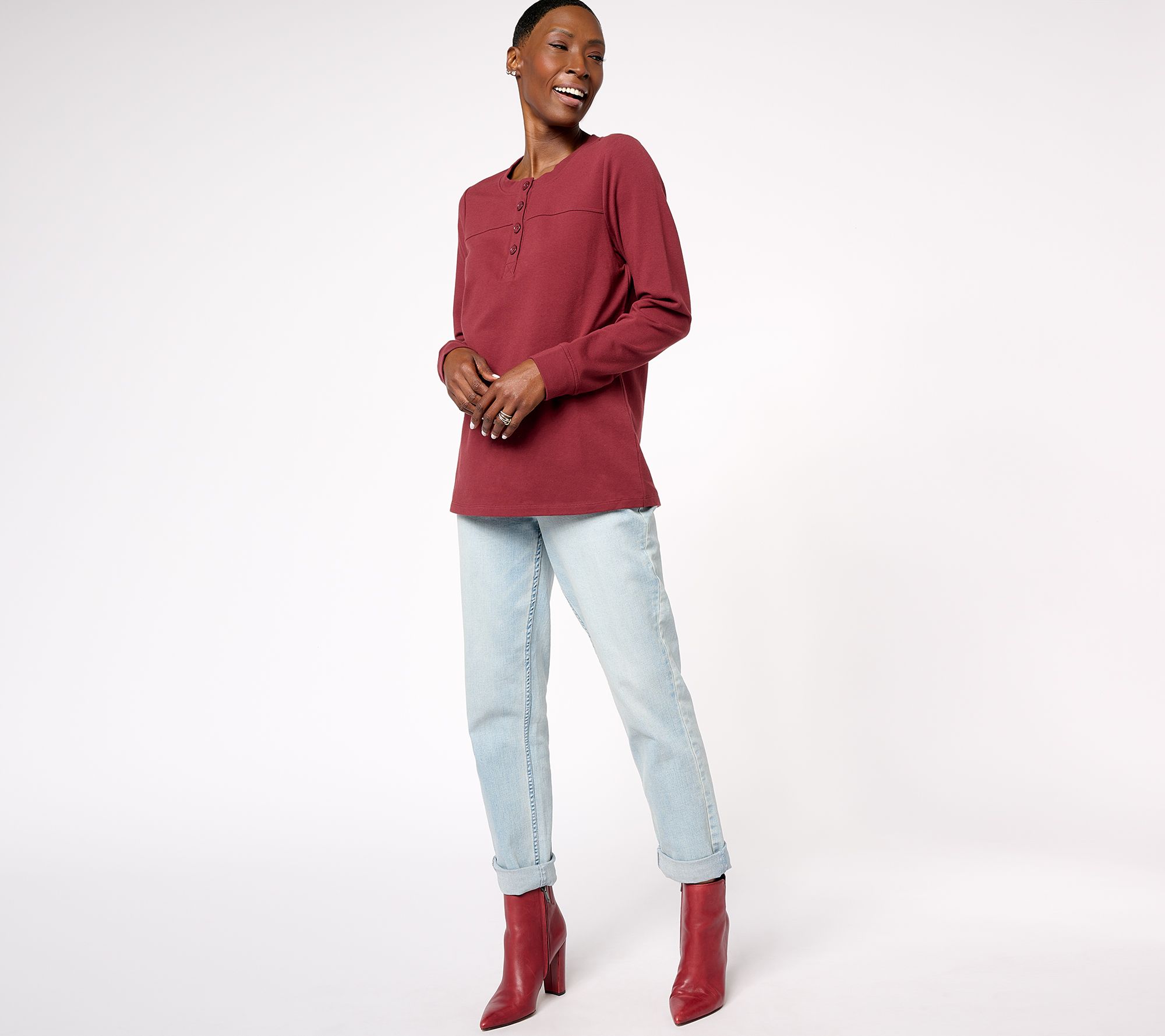 Give your weekend wardrobe a boost with this stylish pullover that features four buttons on the front. From Denim & Co.® Fashions.