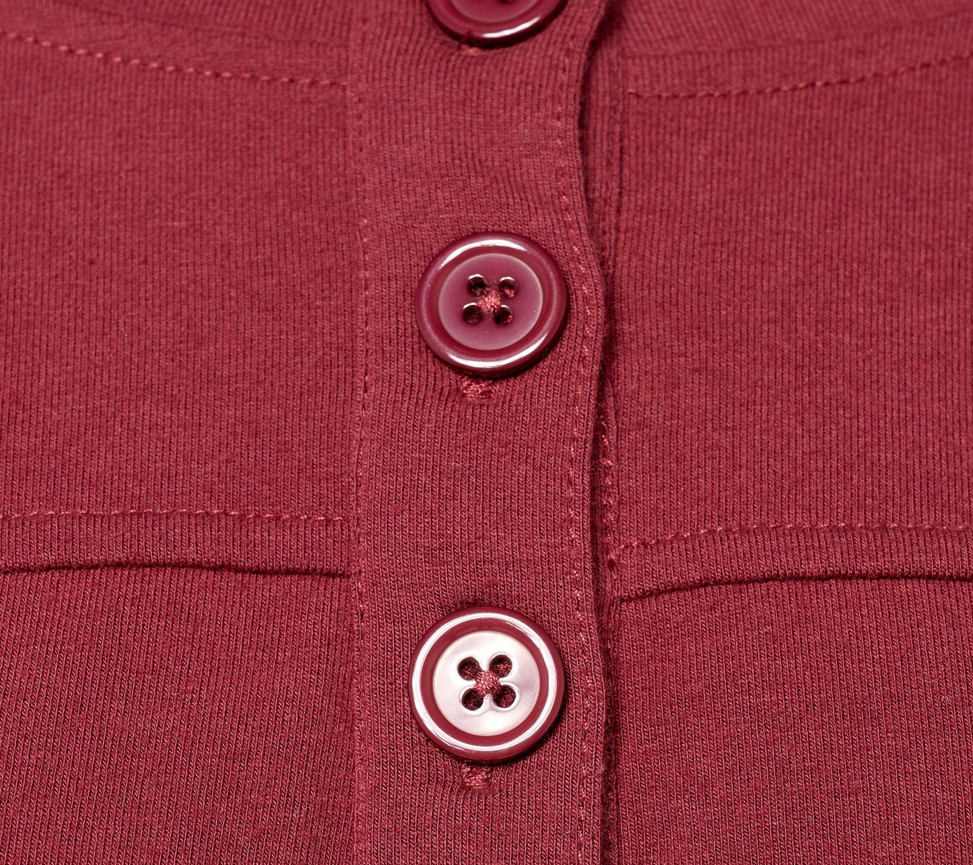 • Features: long sleeves, round neckline, front yoke, separate self-folded placket with four functional buttons, self-folded cuff, straight bottom hem