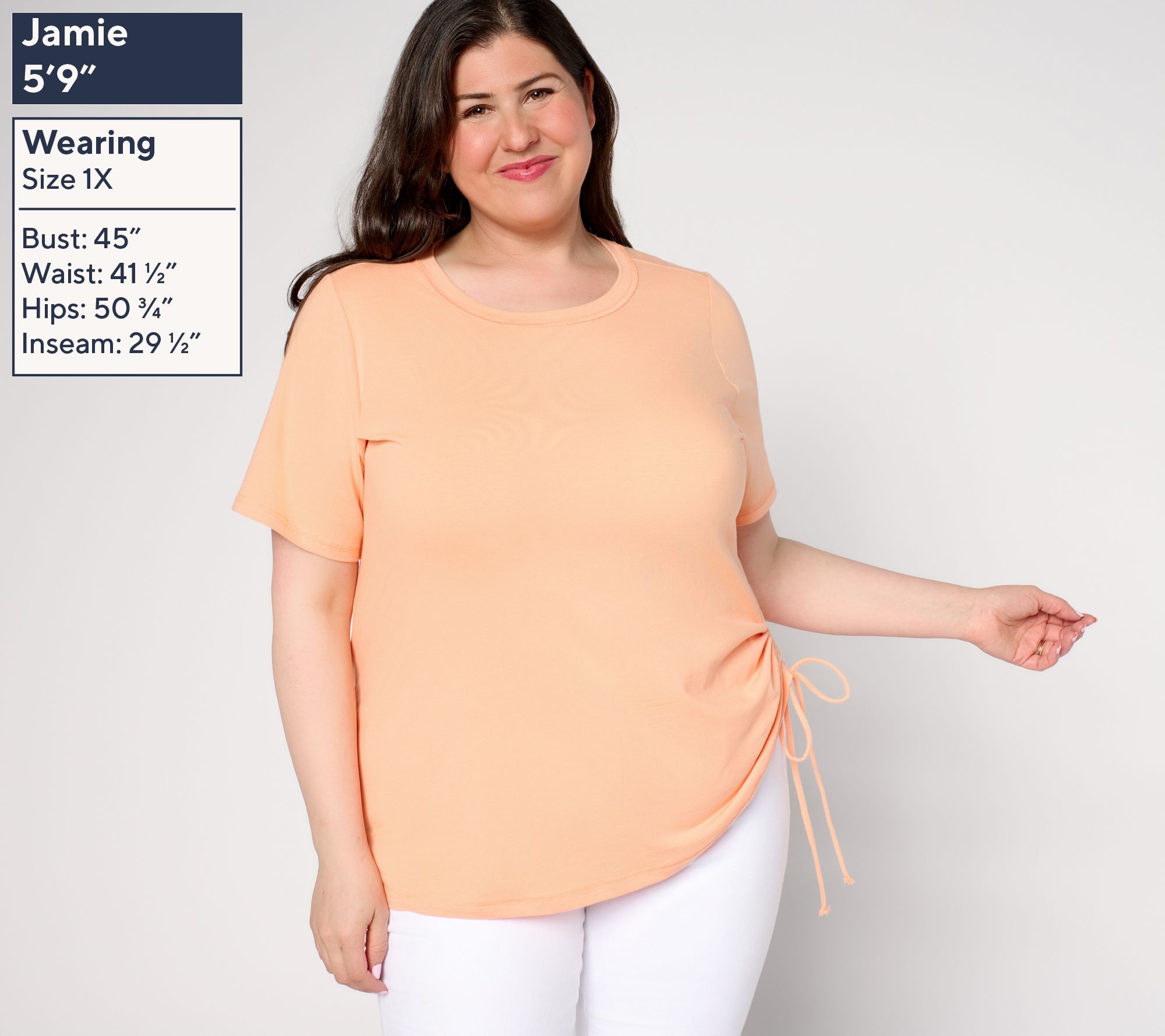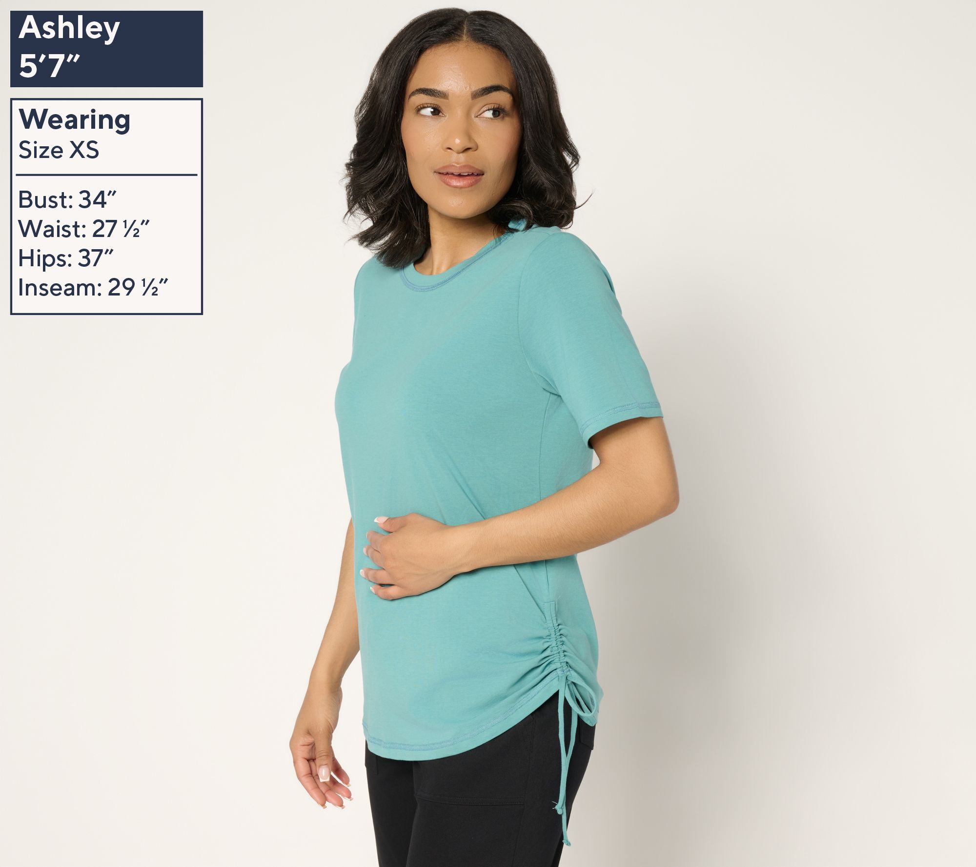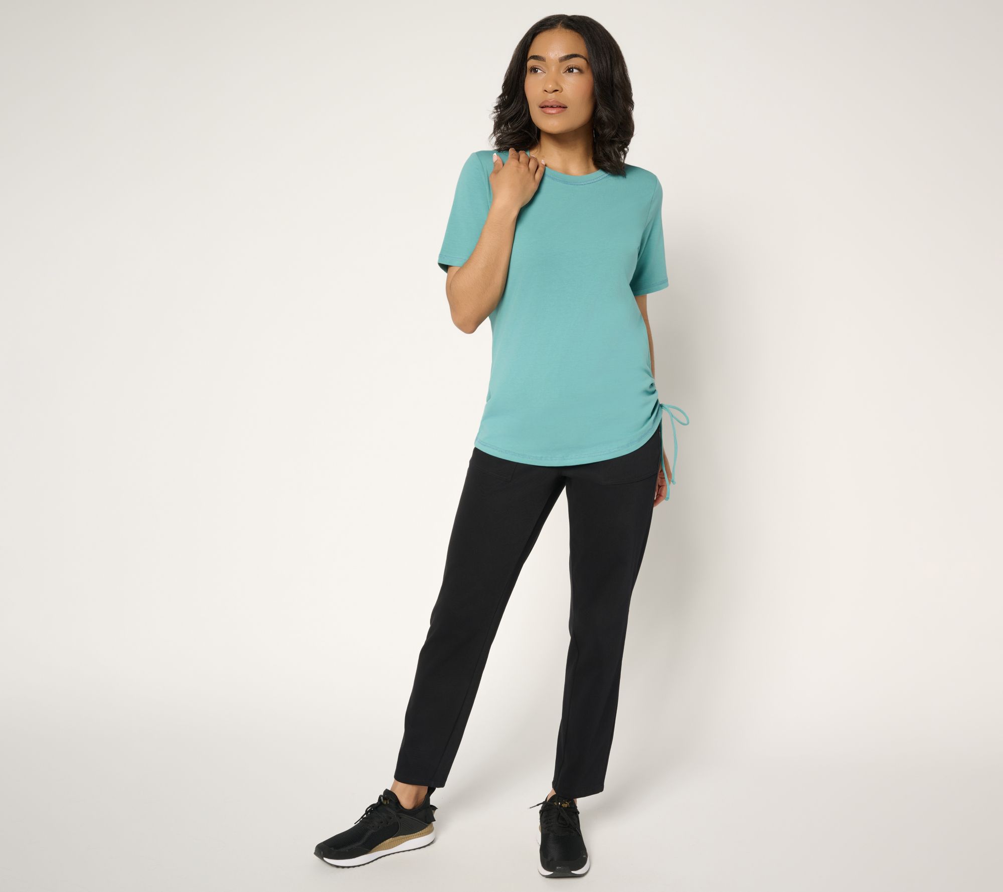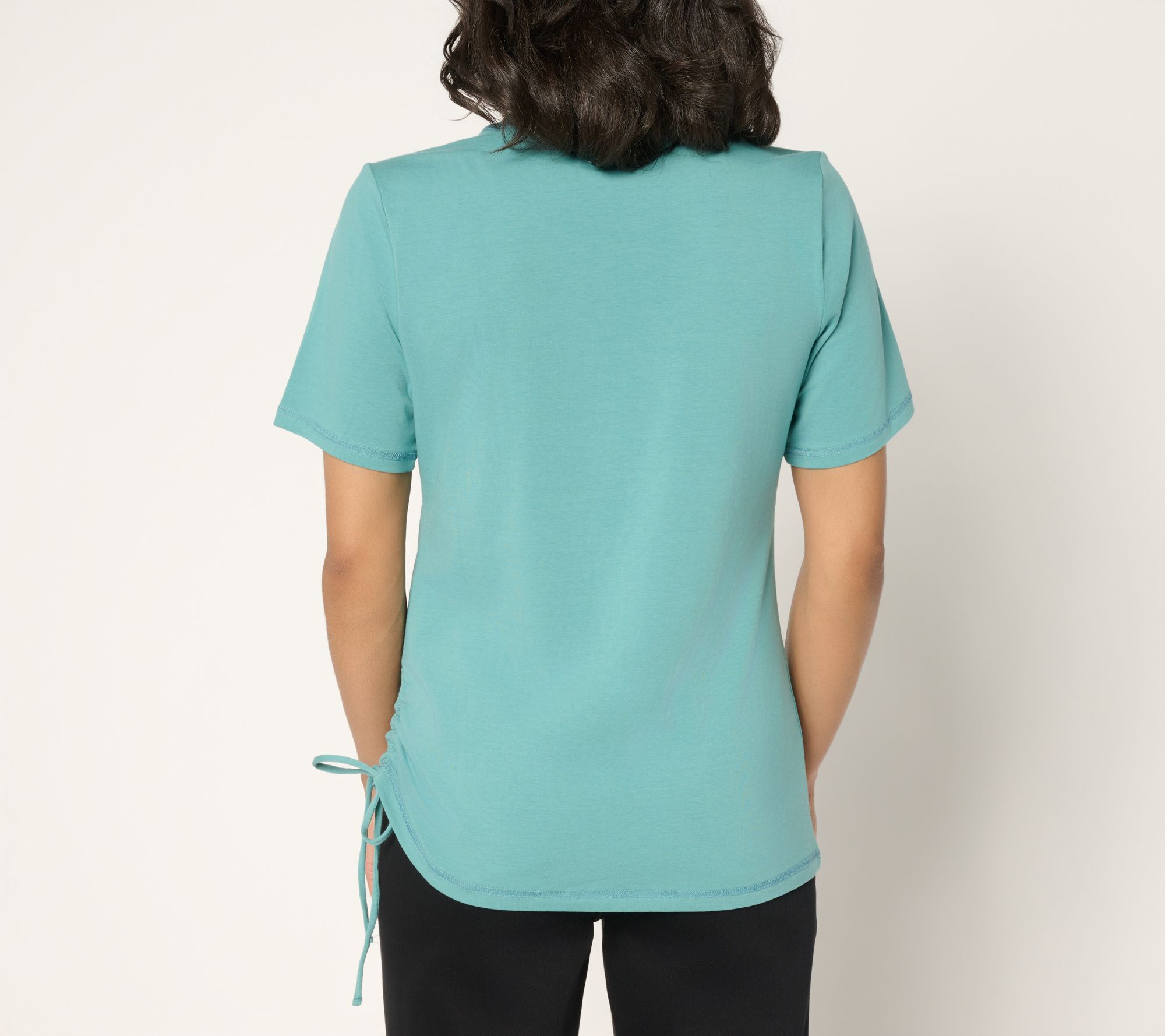 Denim & Co. Active Jersey Short-Sleeve Top with Ruching Detail