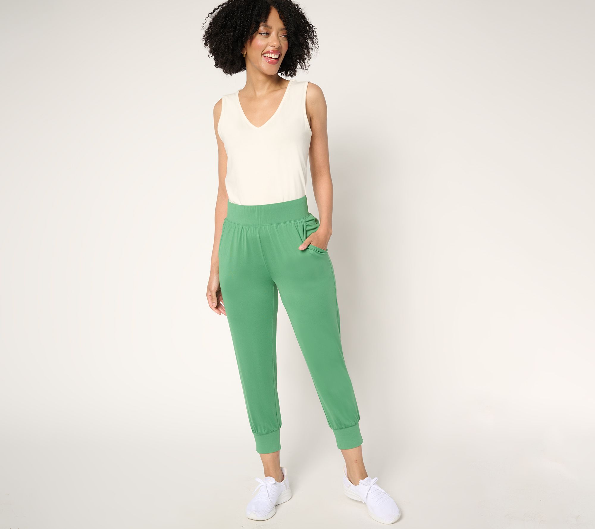 Early morning strolls to early-bird dinner plans -- without a second visit to your closet! These Denim & Co.® Active crop joggers are designed for all-day comfort (thanks to an easy pull-on style and cool-touch knit fabrication). From Denim & Co.® Fashions.