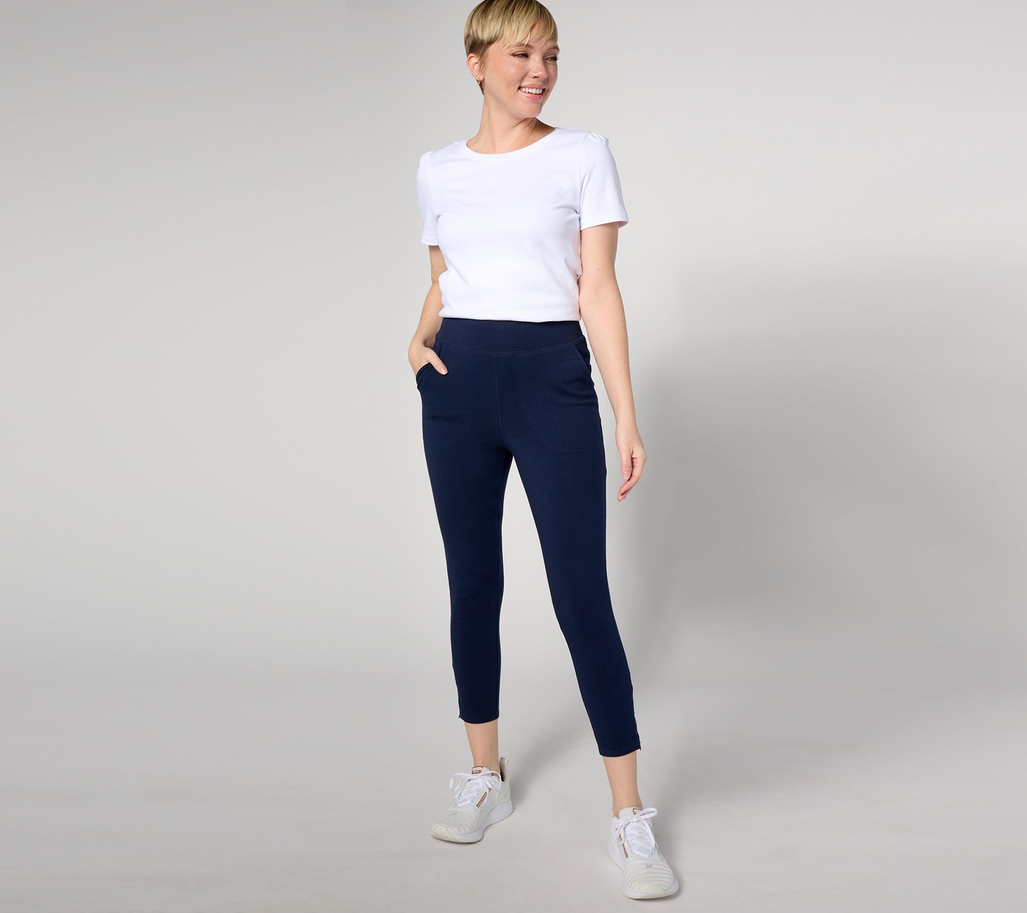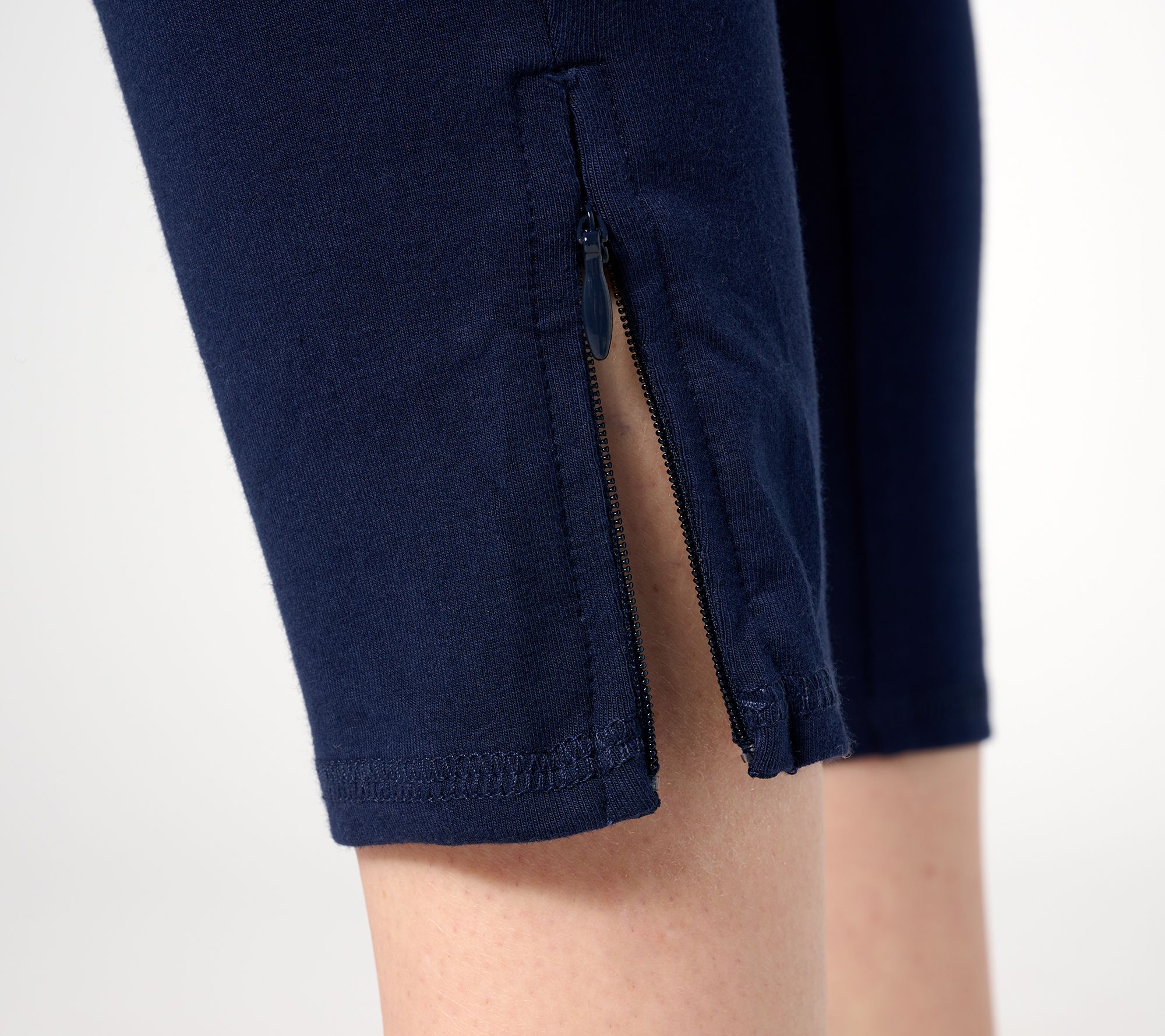 Whether you're running around town or the park, these stretch crops are a fashionable choice. A zip at the hem adds a sweet (and functional) touch. From Denim & Co.® Fashions.