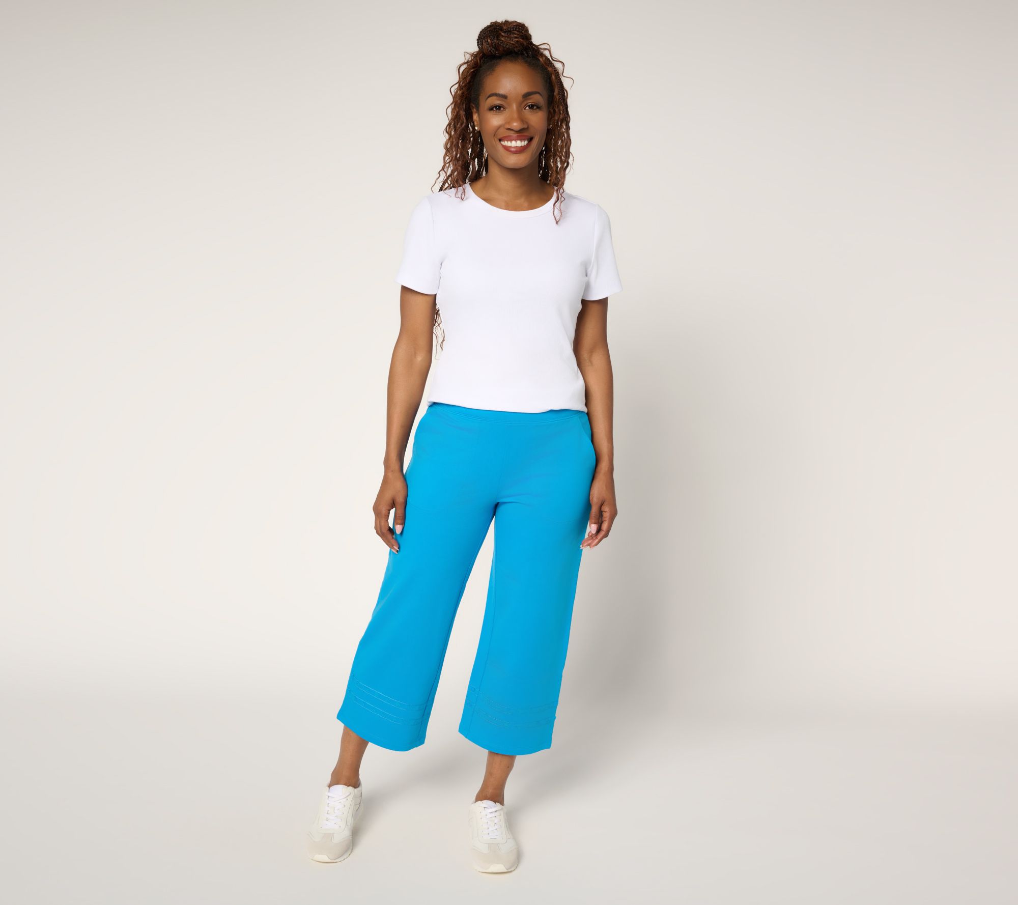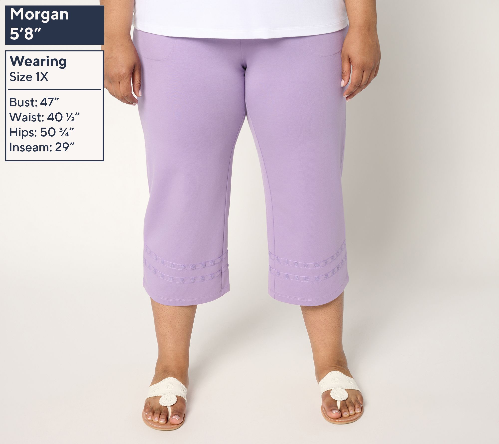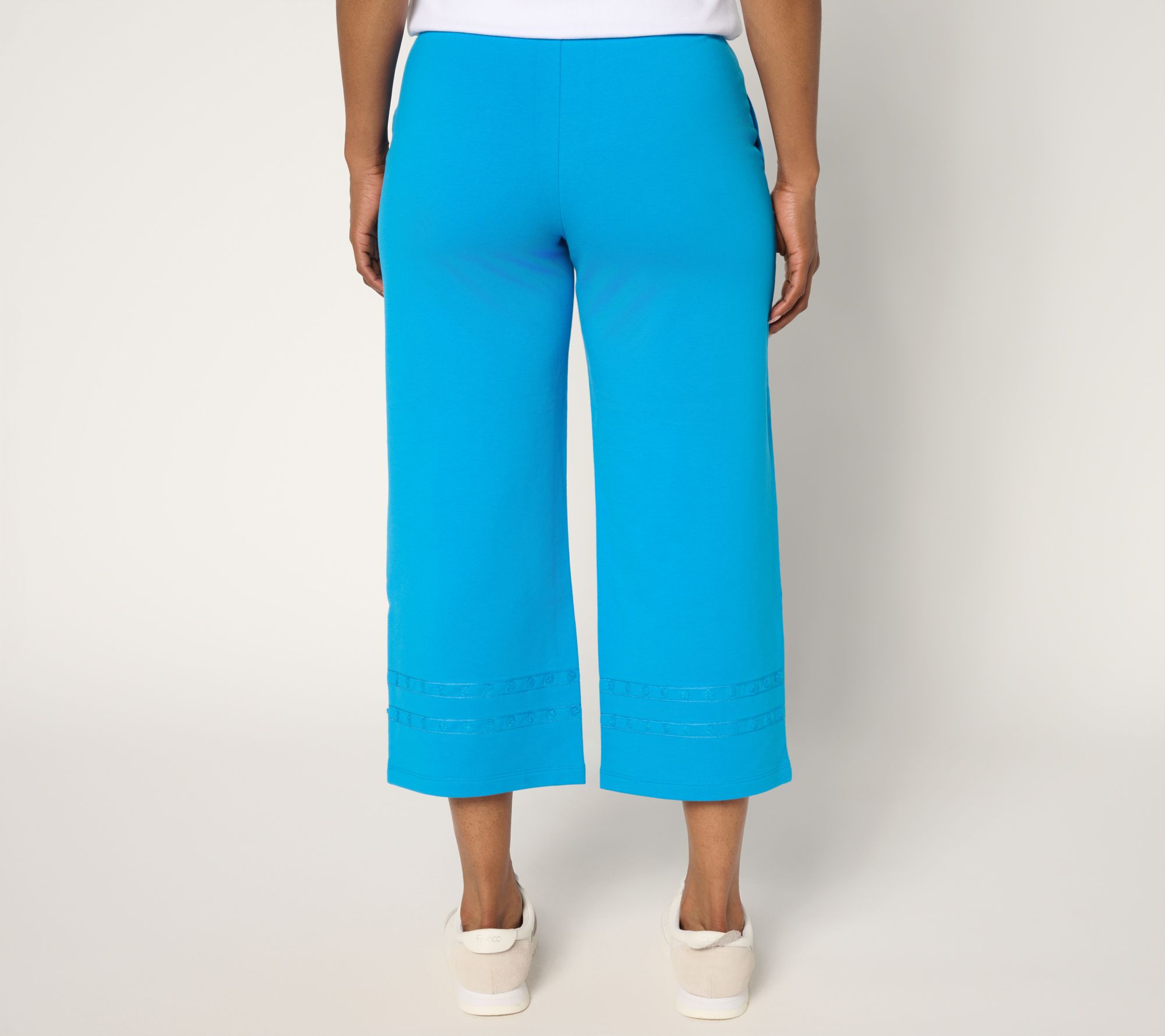 From grueling grocery hauls to playing hide-and-seek with the grands, these French terry crop pants add an easygoing vibe to your busy routine. The pull-on style with a flat elastic waistband keeps you comfortable and moving with ease, while a sweet embroidered hem lends just the right embellishment to qualify for beyond-basic status. And, if you find a few moments for some hammock-swinging relaxtion, they'll cozily come along for the ride. From Denim & Co.® Fashions.