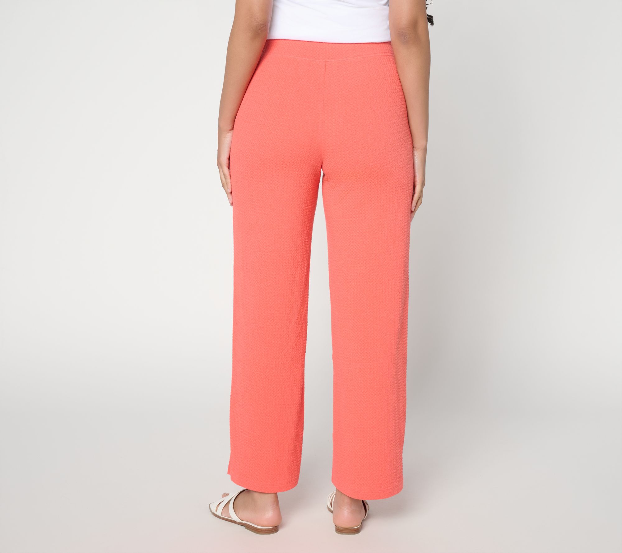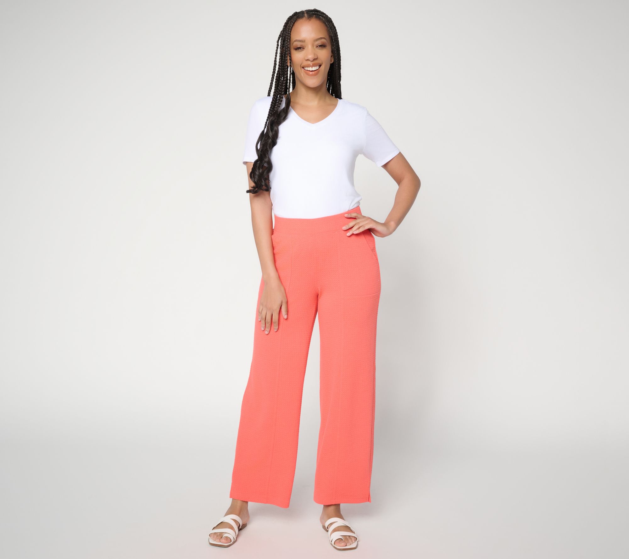 Not just any knit. These ankle-length pants take your relaxation routine up a notch with their textured jacquard finish. A wide leg makes them stylish enough for brunch and cozy enough for lounging at home. From Denim & Co.® Fashions.