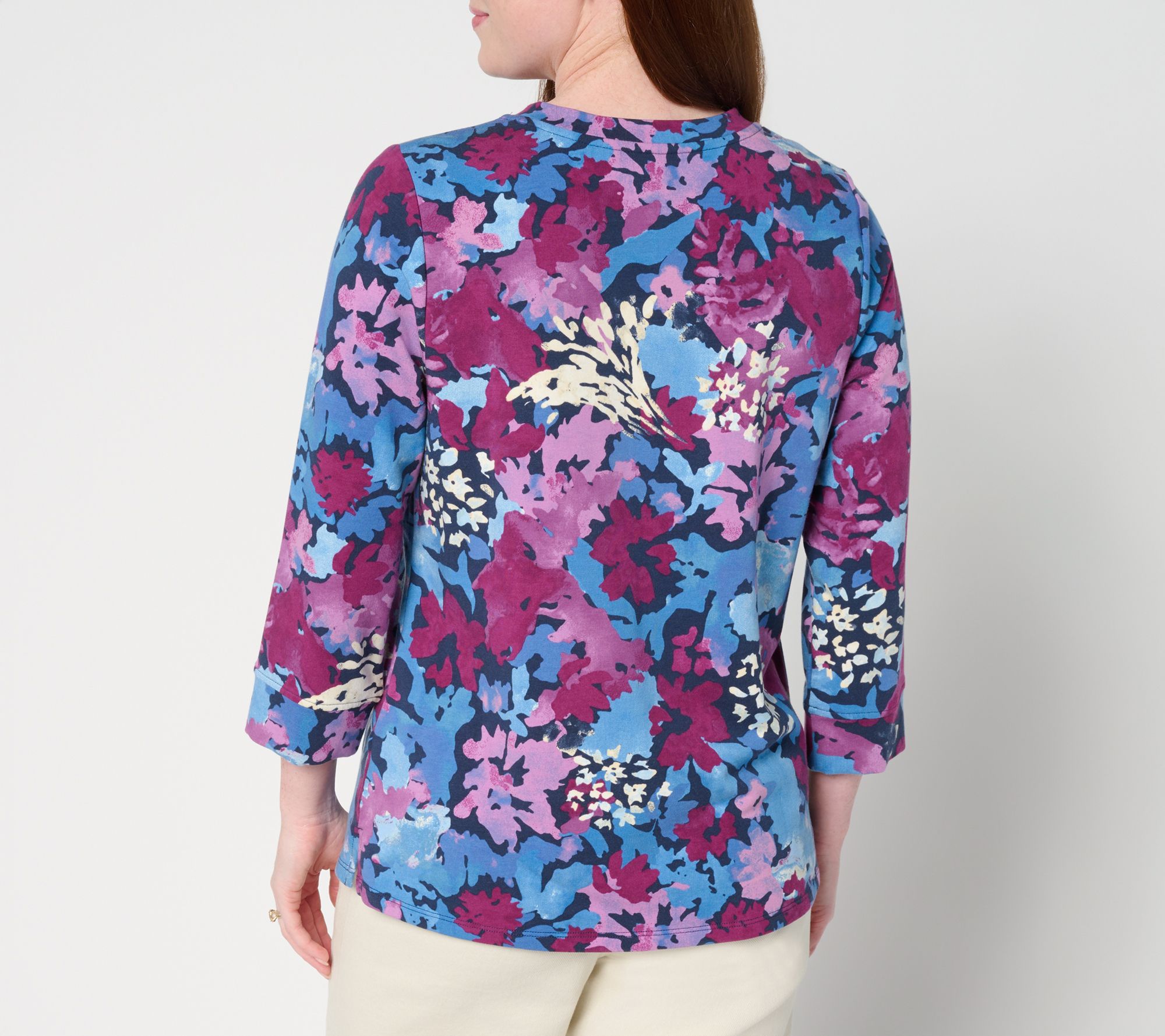 Denim & co. Active Printed French Terry 3/4 Sleeve Top