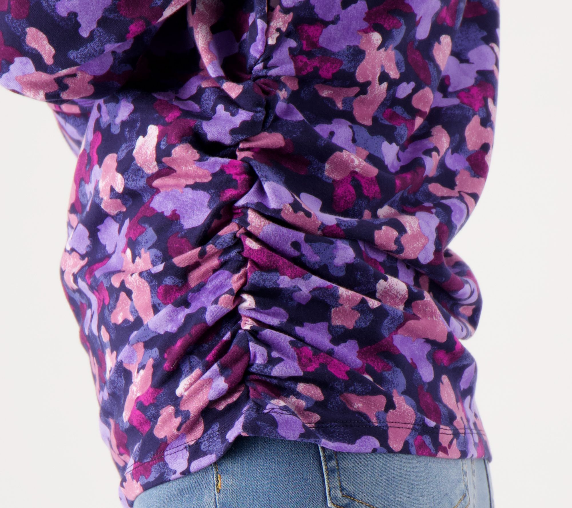 The comfort of the French terry plus the stylish side ruching details? You've got yourself a closet essential that won't see too much time in your closet. From Denim & Co.® Fashions.