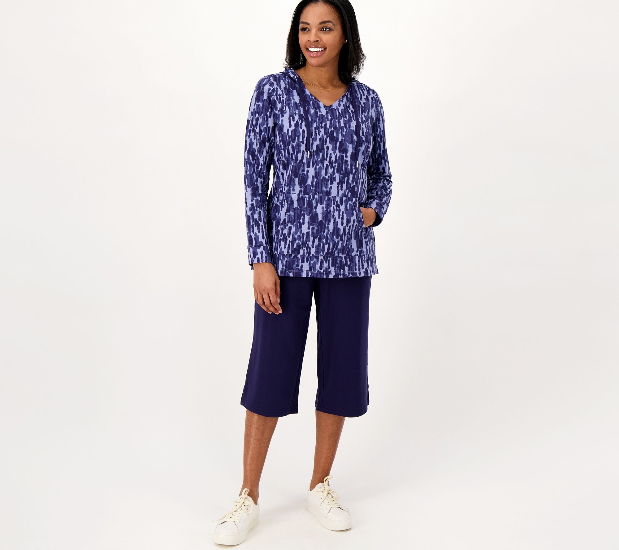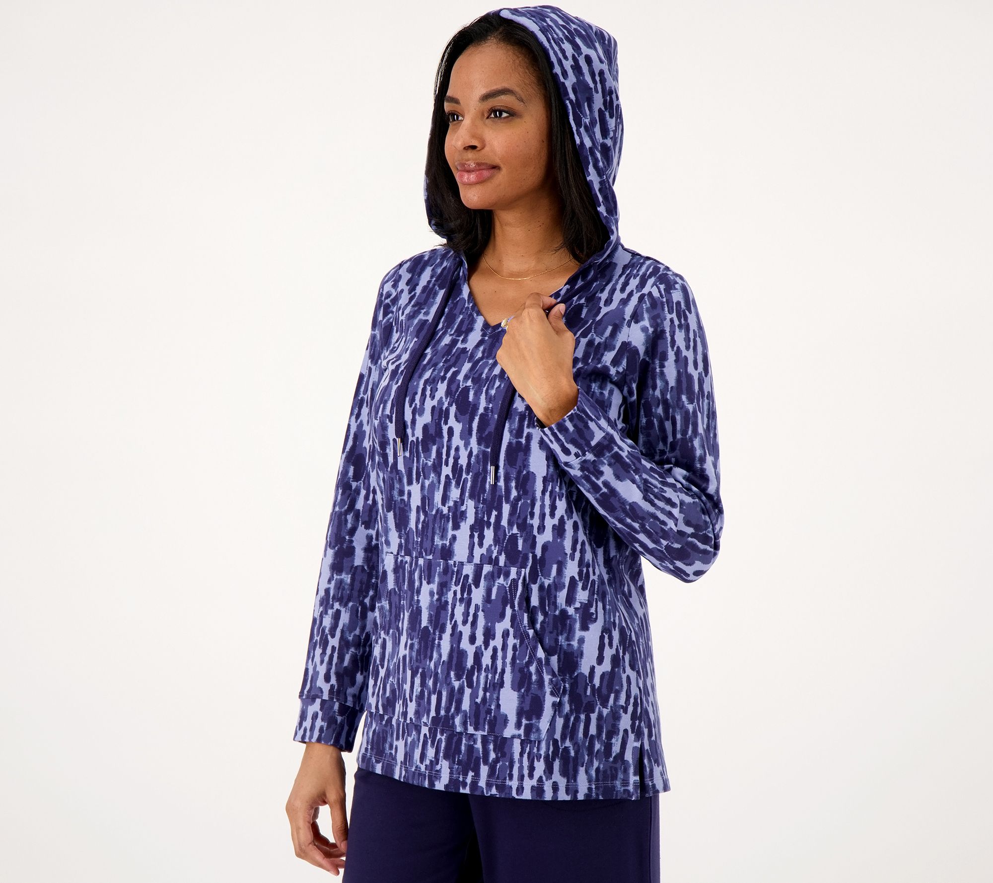Get active in this comfortable hooded tunic pullover (and look fab doing it!). Chic and cozy, this top takes you effortlessly from the morning at the coffee shop to crush a gym session. From Denim & Co.® Fashions.