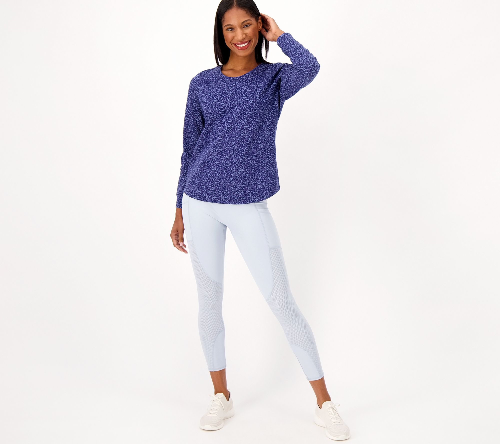 Features: scoop neckline, pullover style, long sleeves, curved hem, self-folded cuff