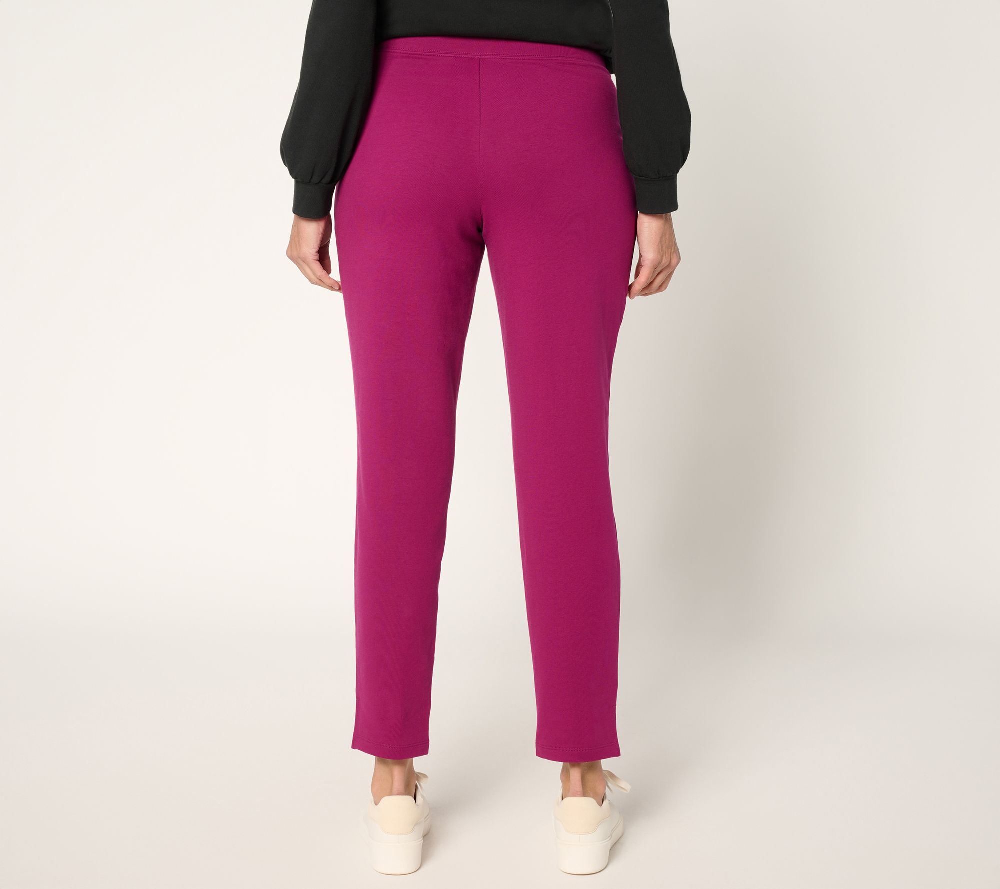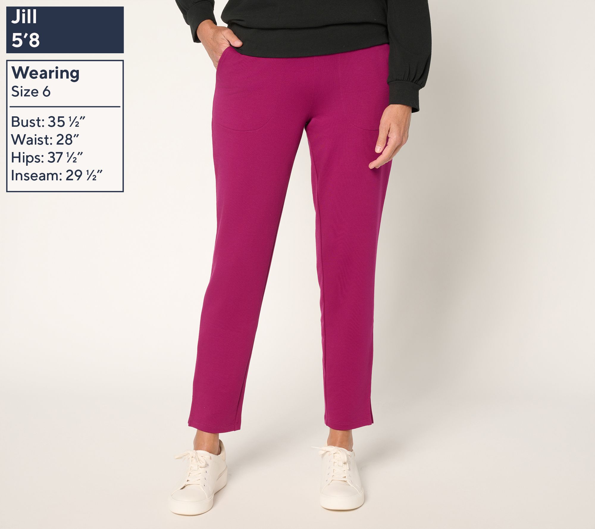 French terry for the win! Slip on these brushed back ankle pants for everything from lounging at home to tackling the day's errands. With ample stretch for easy movement, they blend comfort with a polished athletic style you'll want to wear again and again. From Denim & Co.® Fashions.
