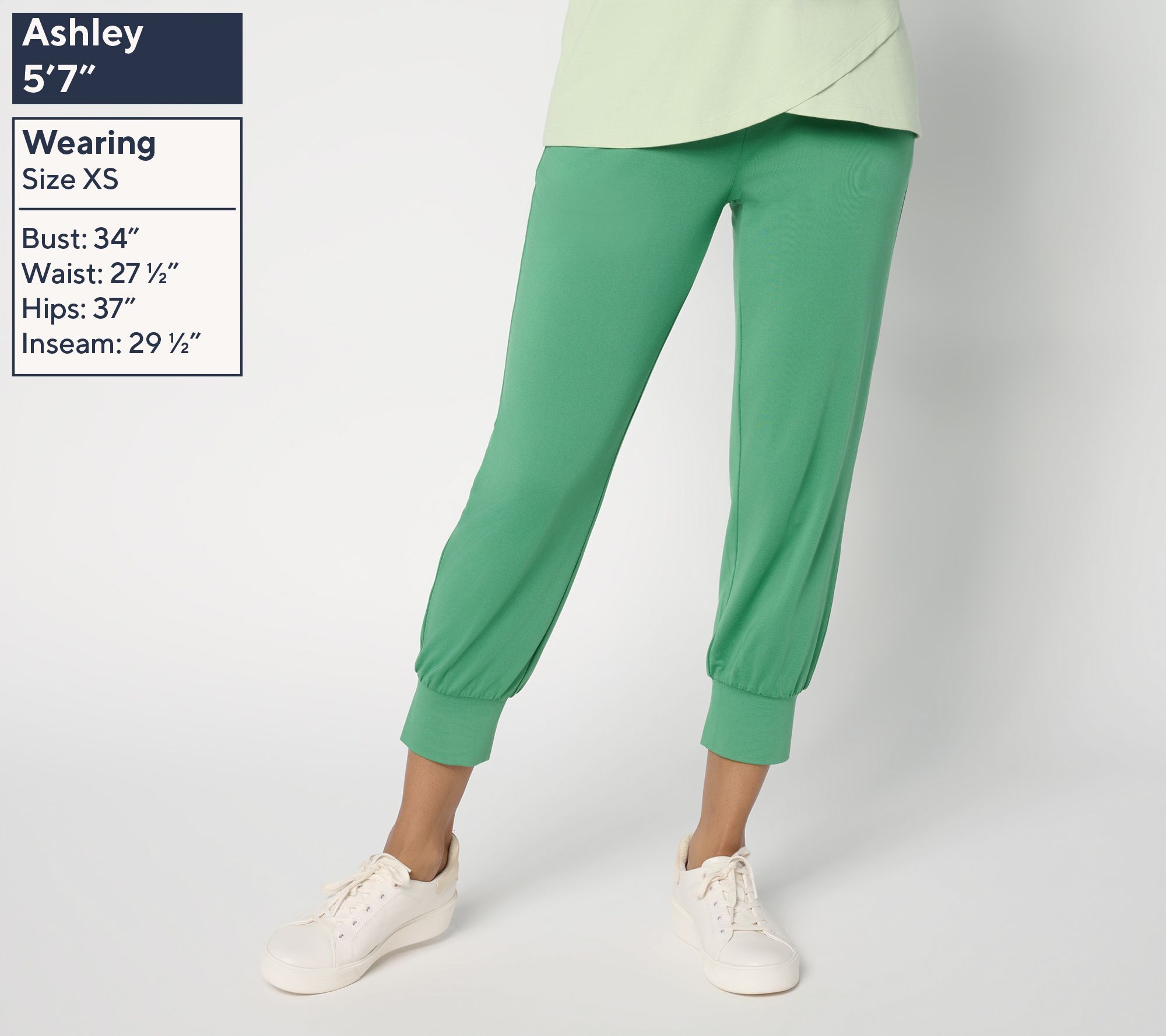 • Features: pull-on jogger style, cropped, elastic waistband, front pockets, cuffed hems