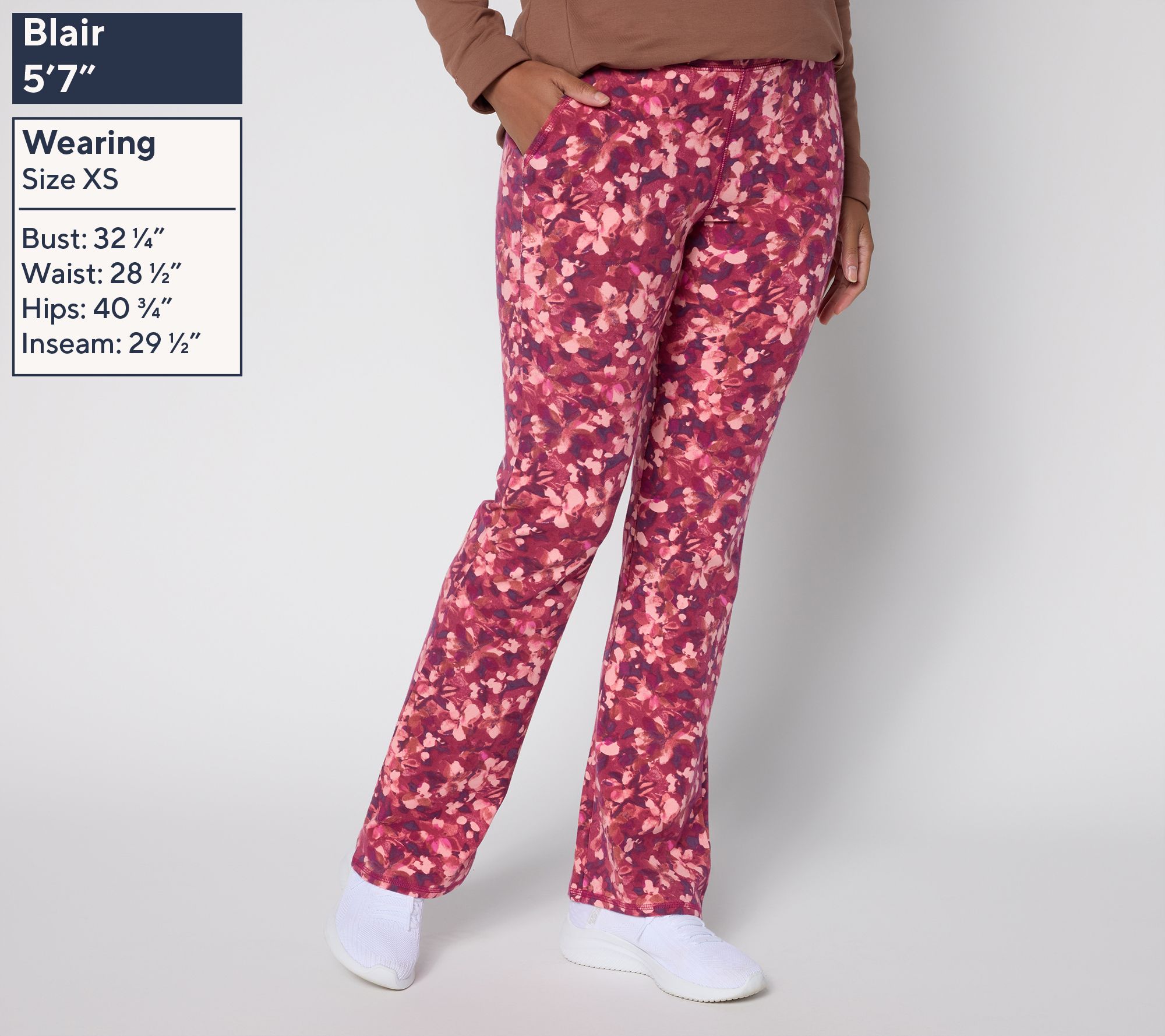 Liven up busy days with the cozy stretch and modern print of these Lightly Bootcut® pants, designed for all-day movement and effortless flair. The pull-on style with a flat elastic waistband and stitched-down front pockets offers both comfort and practicality, making it easy to dress them up or down for any occasion. From Denim & Co.® Fashions.