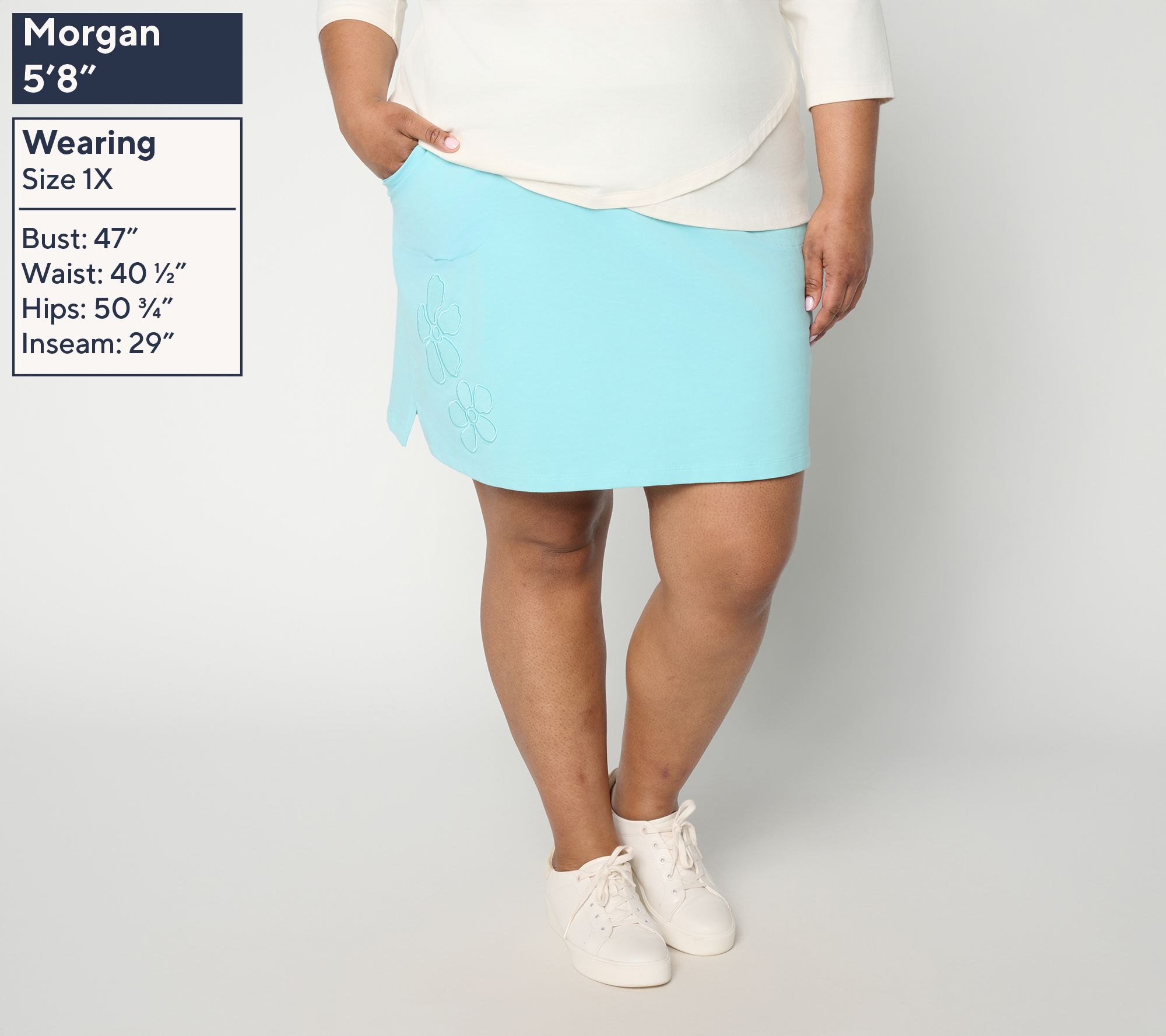 Take a fresh approach to busy mornings and casual afternoons in this active French terry skort featuring a soft patchwork motif. With attached jersey shorts for coverage and side pockets for keys or cards, you can head from appointments to a lunch date with ease and style. From Denim & Co.® Fashions.