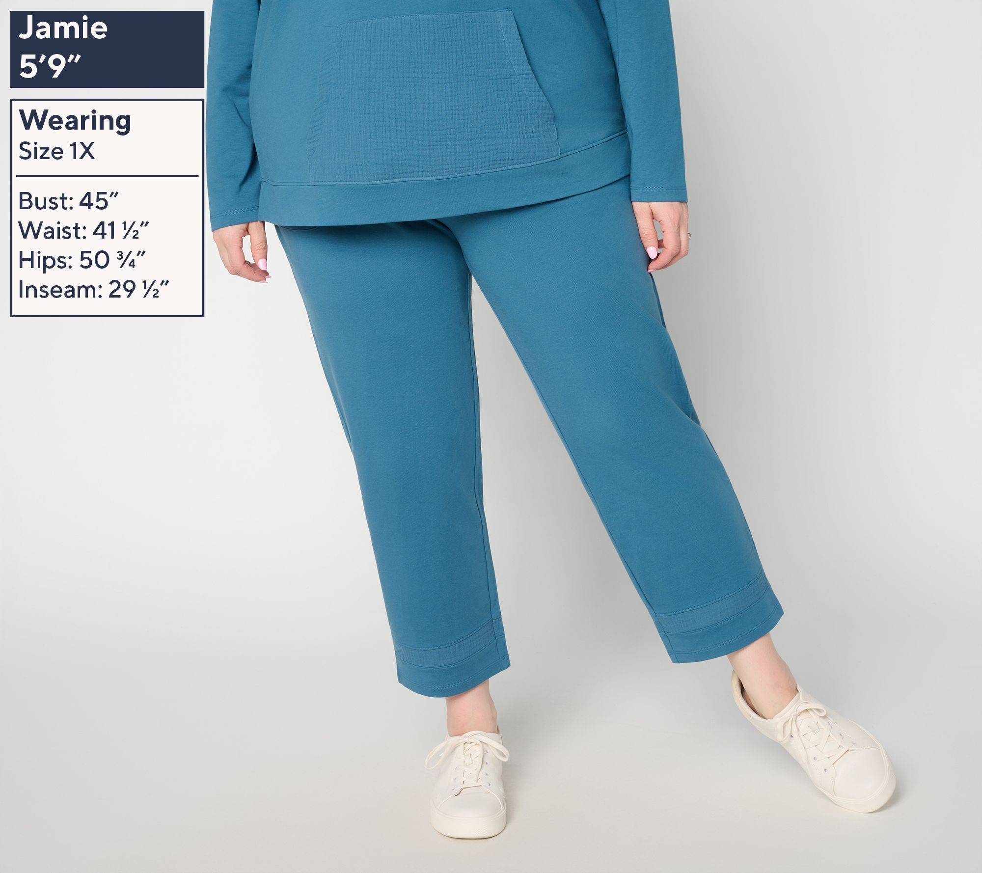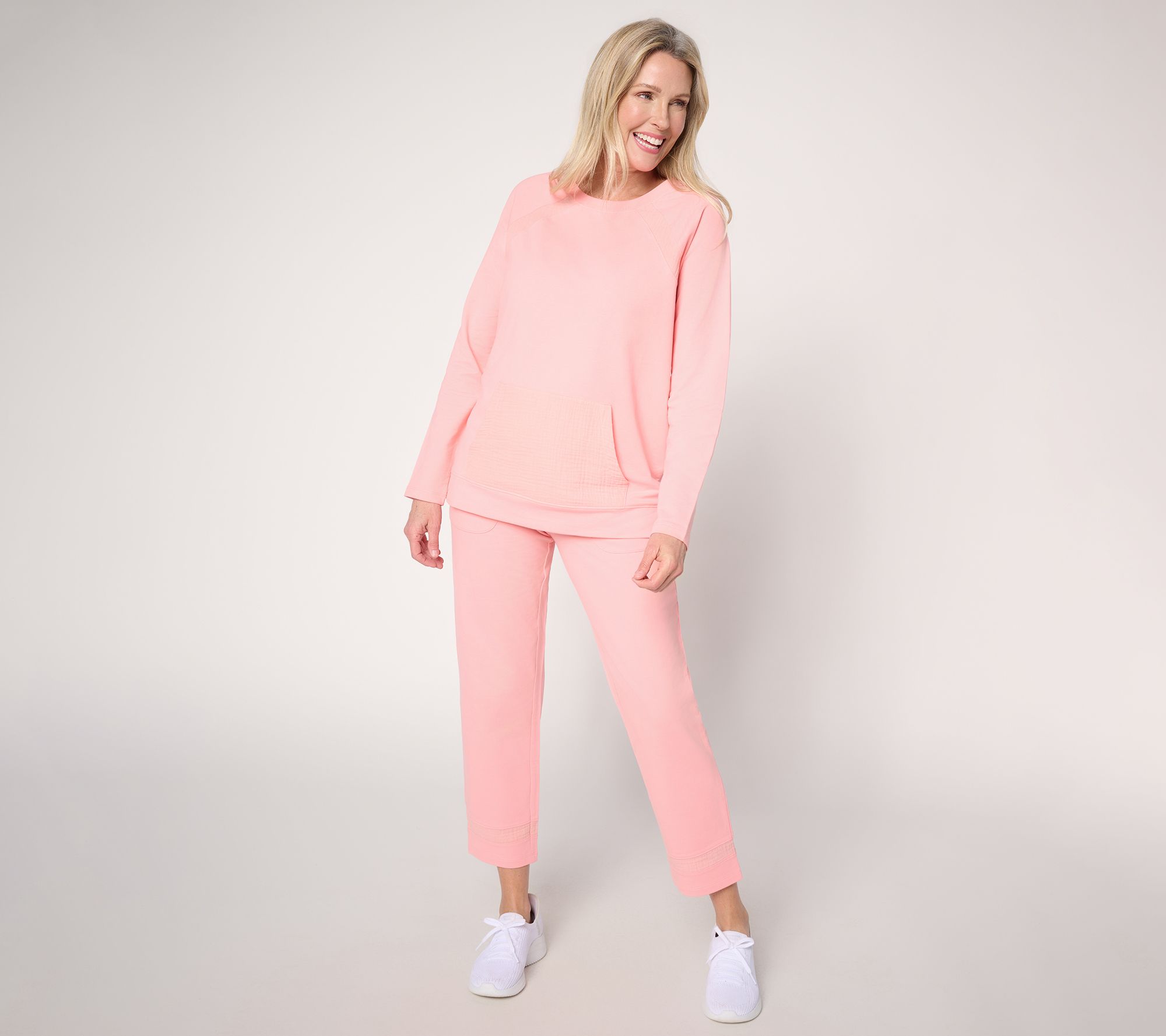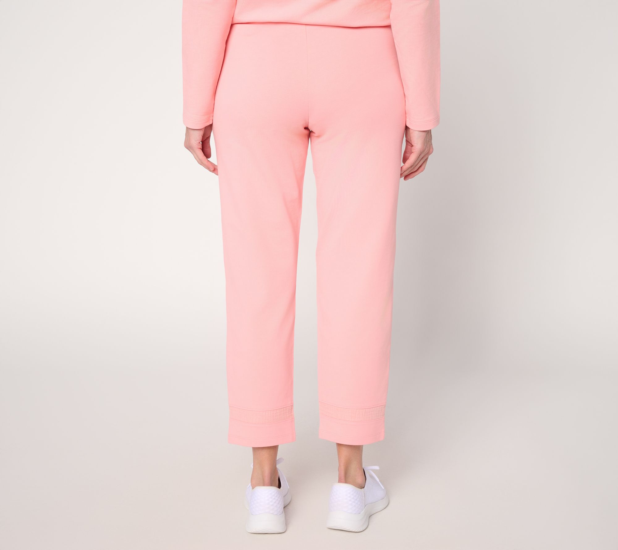 A go-to for blending super-soft comfort with sporty flair, these knit French terry ankle pants let you breeze through your errand-filled day with ease. A soft stretch fabric moves with you, while cotton gauze detail at the leg hem takes casual style up a notch (or two!). From Denim & Co.® Fashions.
