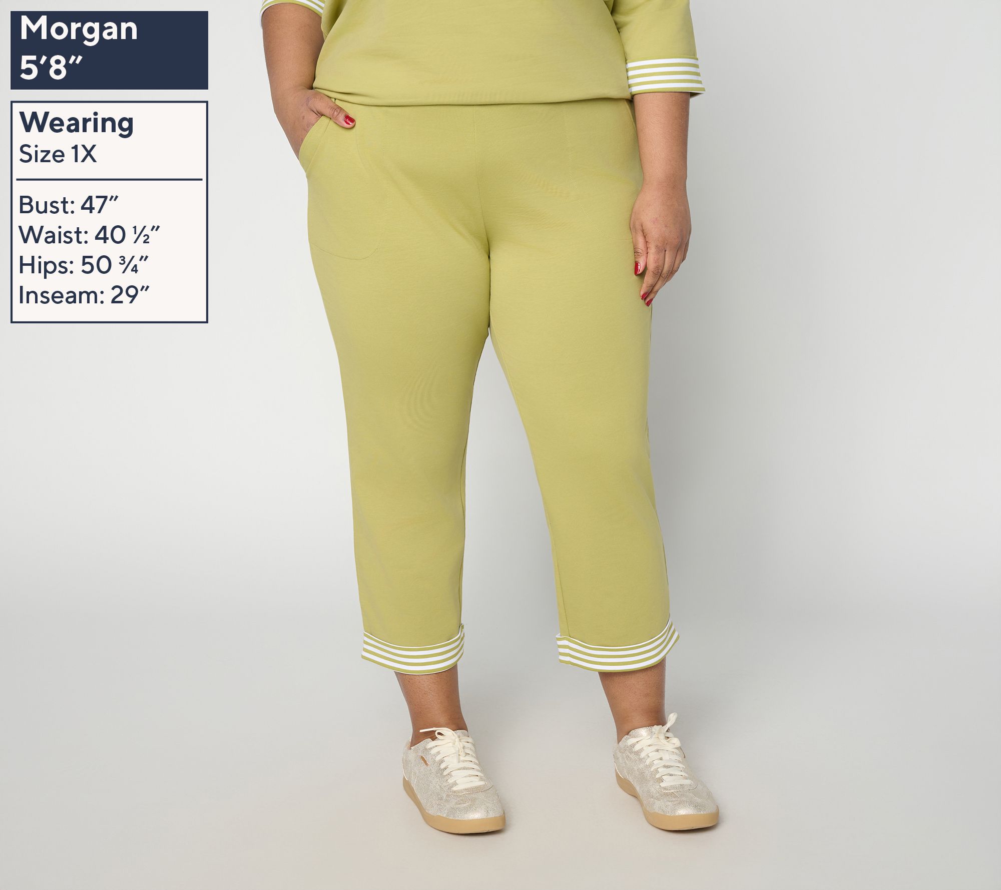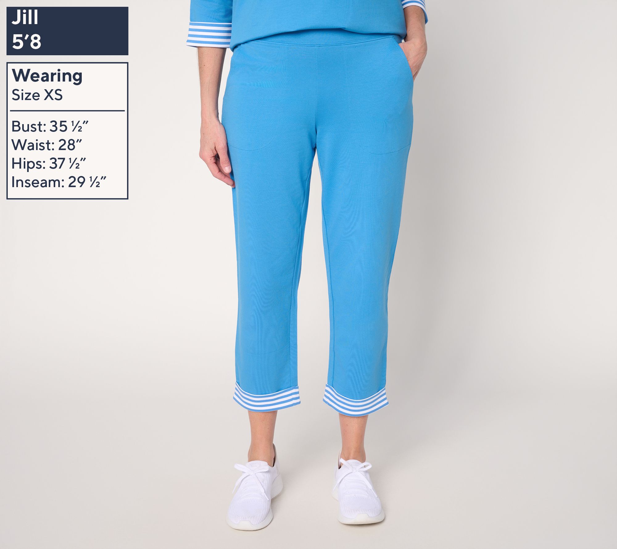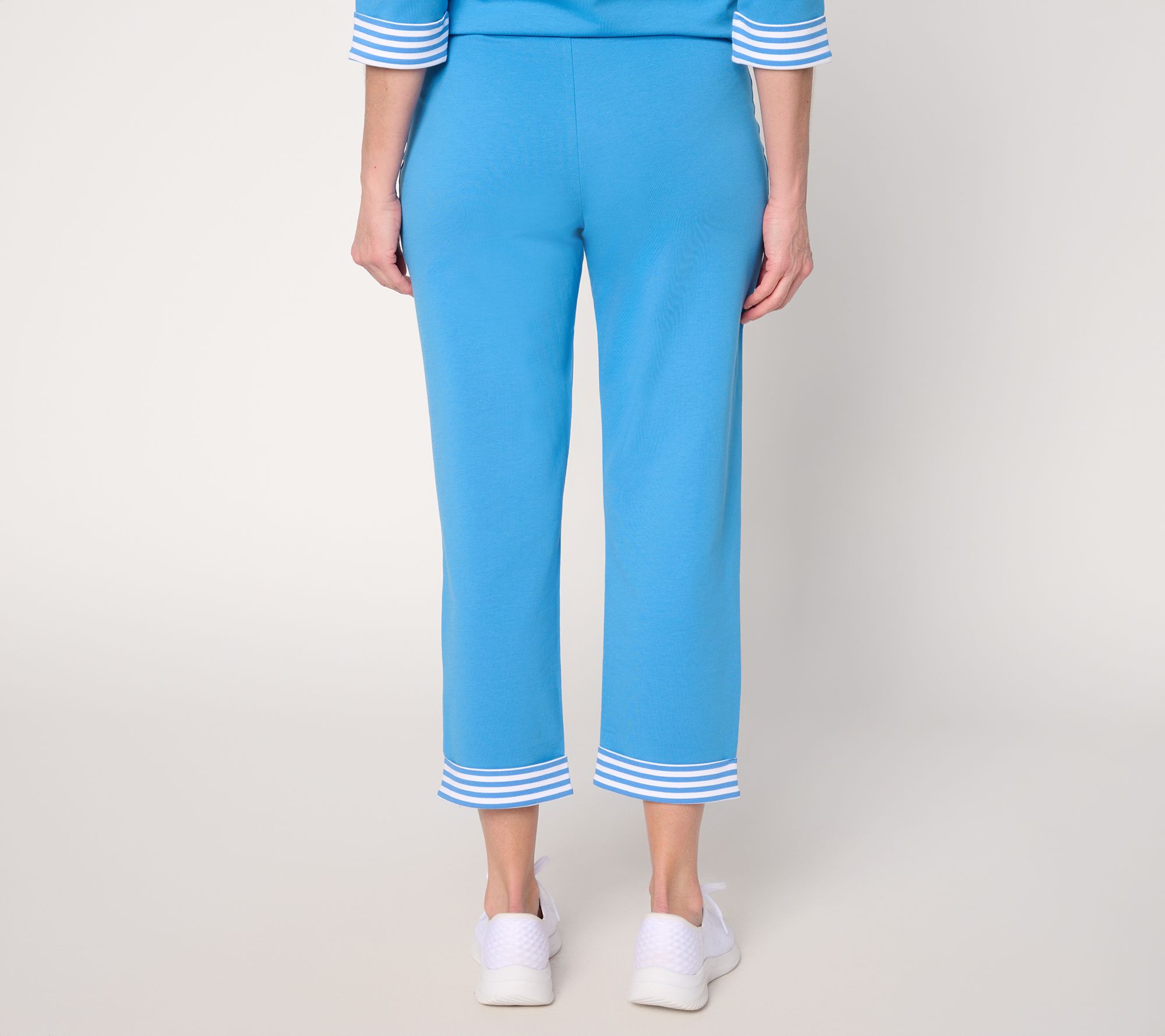 Are you in the crop pants camp when it comes to active-day dressing? (We're fans!) Add a little spice to your warm-weather uniform with these French terry cuties. A little stripe detail on the leg cuff goes a long way, instantly adding a playful punch to your athleisure options. Thankfully designed with a touch of stretch, pull-on ease, and pockets for practicality, they're an ideal choice for everyday adventures. From Denim & Co.® Fashions.