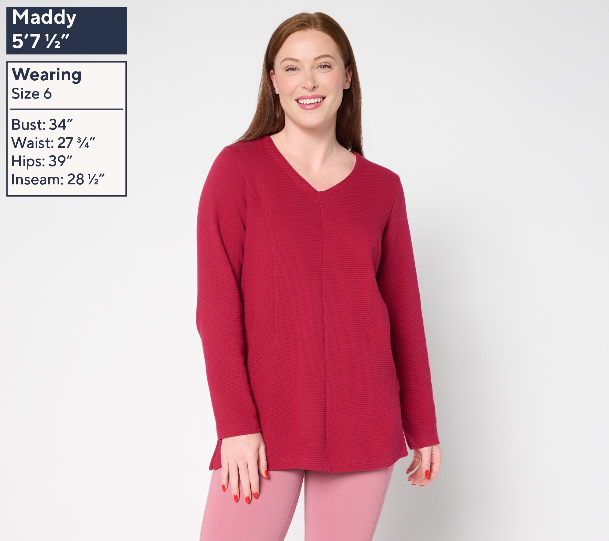 Pulling on this ottoman knit tunic offers instant comfort with an active-inspired edge, making it ideal for morning errands, park strolls, or catching up with friends over coffee. Subtle princess seams, a v-neckline, and side slits deliver flattering style you can pair with leggings, jeans, or even dressier pants. From Denim & Co.® Fashions.