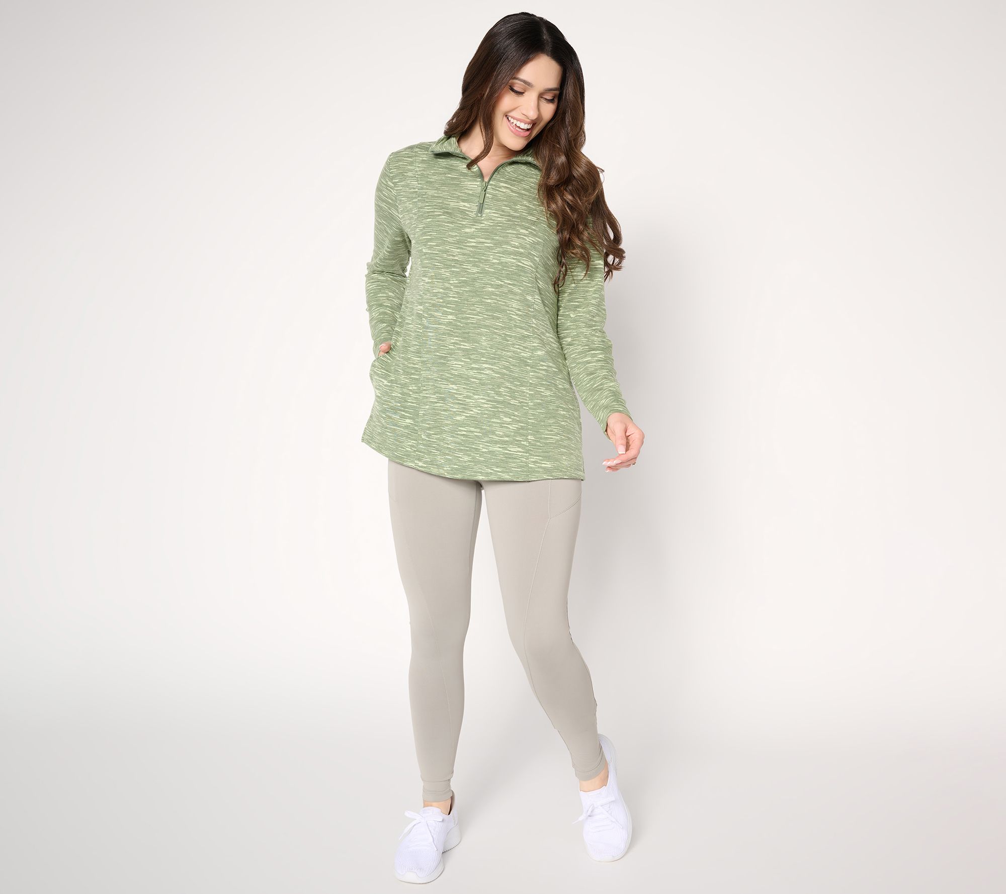 Denim & Co. Active Regular Soft Blend Knit Space Dye Half Zip Tunic