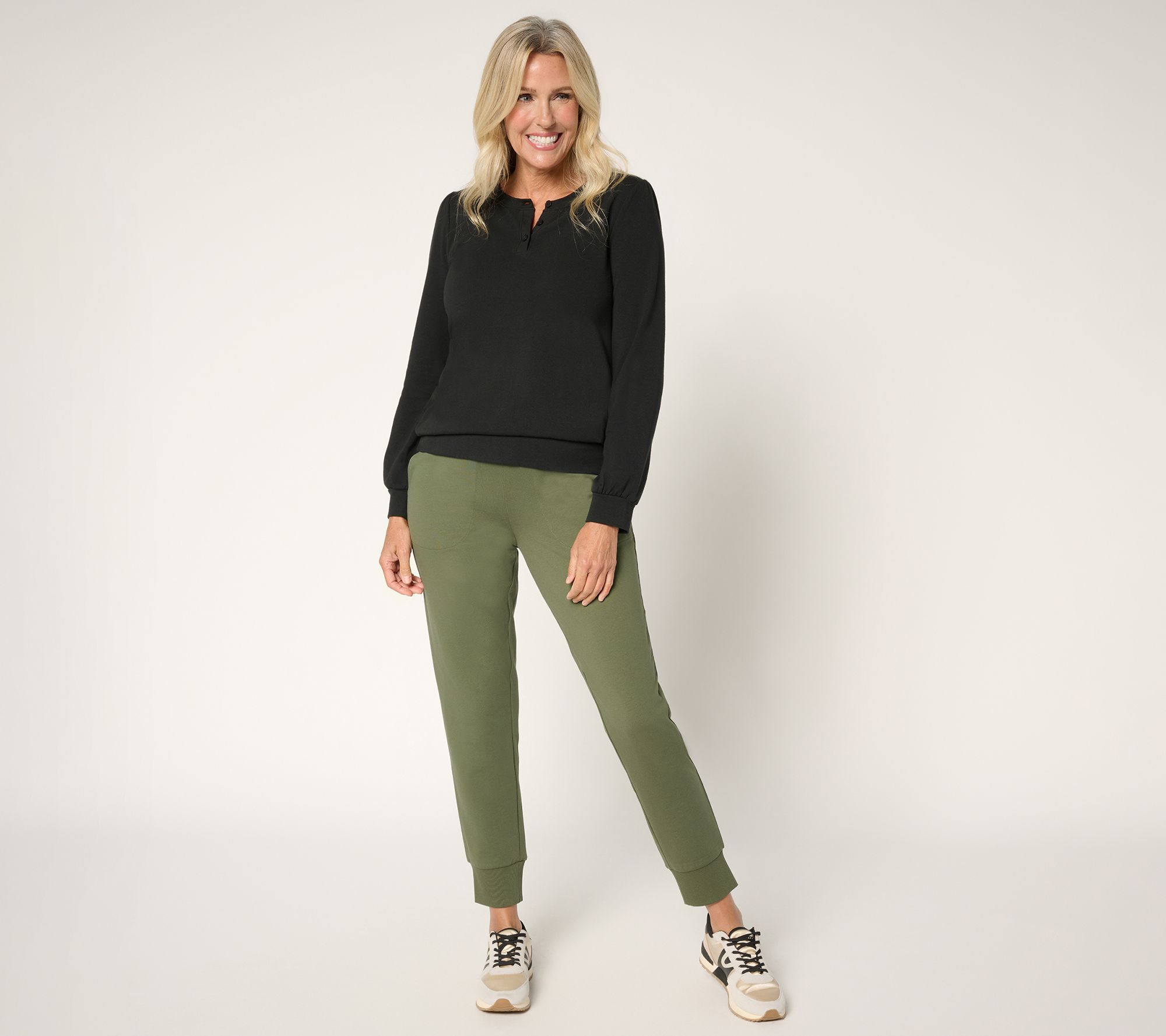 When active days call for comfort -- but you're not into schlumpy sweatpants -- reach for this elevated iteration of athleisurewear. French terry joggers make early-morning walks or unwinding after a busy day feel so cozy while the subtley sporty silhouette doesn't bog your look down in baggy style. From Denim & Co.® Fashions.