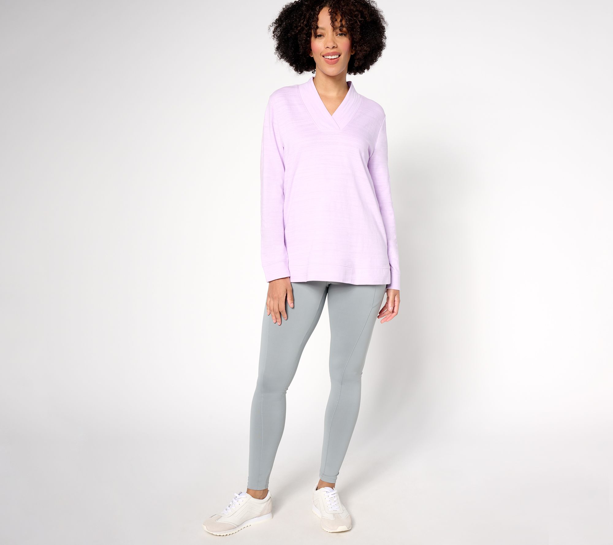 Embrace cozy vibes with this cotton pullover from Denim & Co. Whether you opt for a solid color or a playful floral print, the banded crossover neck adds subtle sophistication to this go-to essential. From Denim & Co.® Fashions.