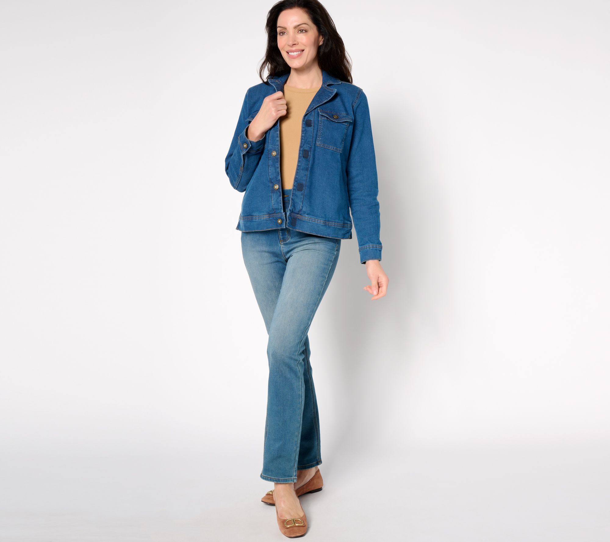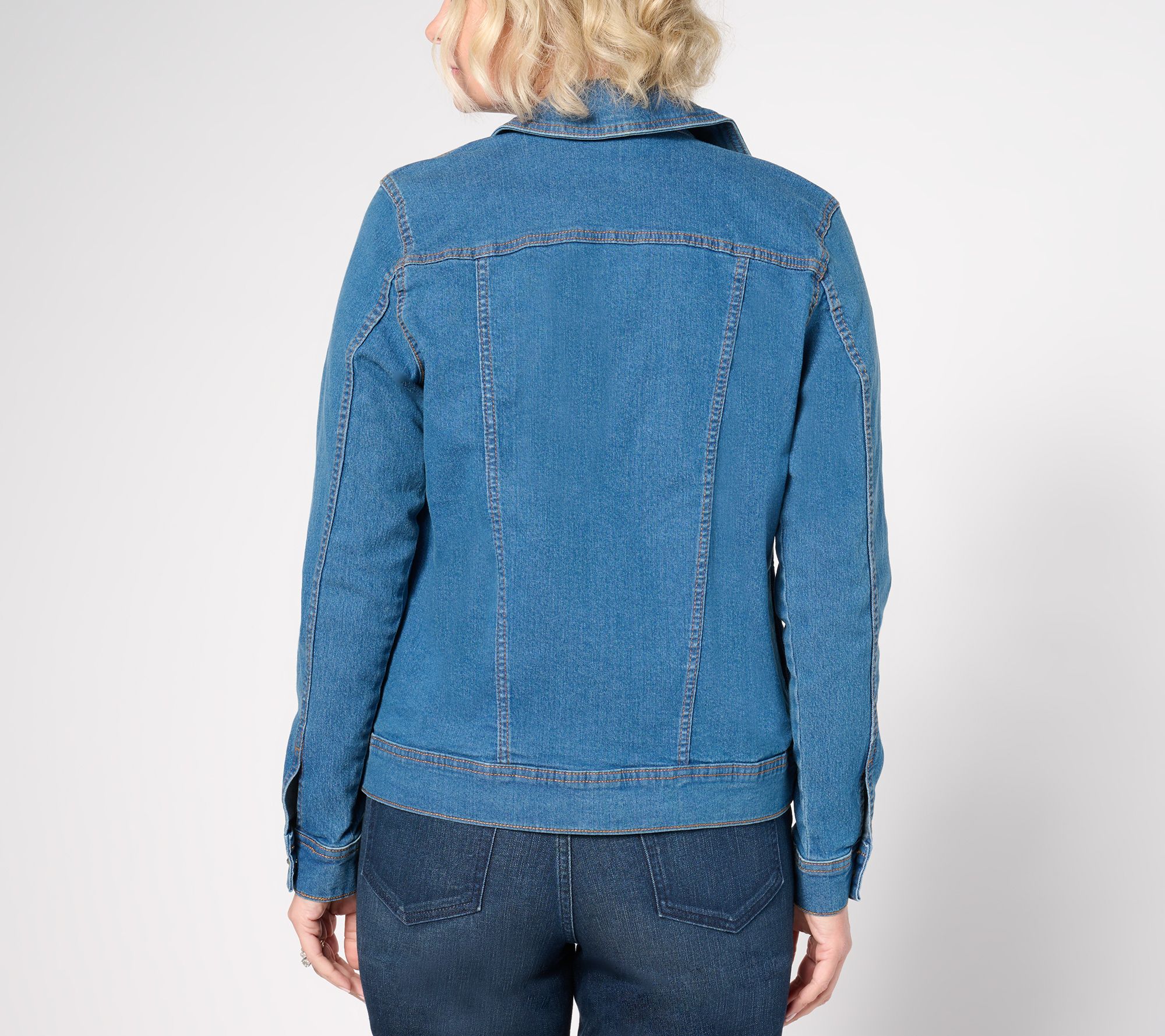 Fall in love with a woven denim jacket again. This infinitely wearable style starts with True Stretch Denim (for a classic-cool denim moment that's ultra comfy and never stiff), adds in an on-trend notch collar and sparkly button details (that act like jewelry), and finishes with a more effortlessly chic you, gliding between appointments, lunch dates, and weekend plans. This adaptive design is crafted with your dressing needs in mind, with hook-and-loop closures at the front placket, cuffs, and flap pockets. From Denim & Co.® Fashions.