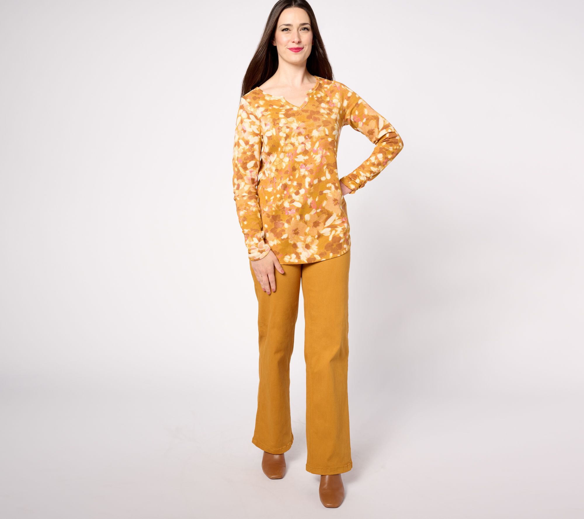 This wardrobe staple can be worn with a wide variety of bottoms. A wide neck opening ensures easy entry and shirring along the sleeves makes for easy adjustability. From Denim & Co.® Fashions.