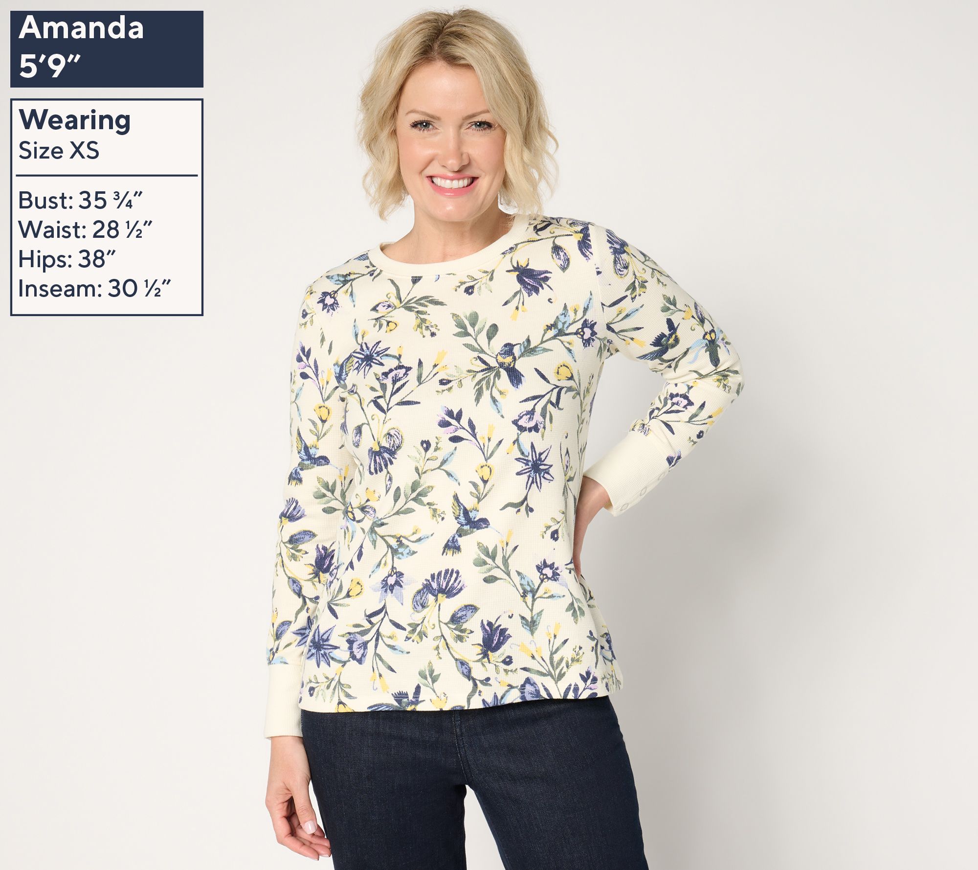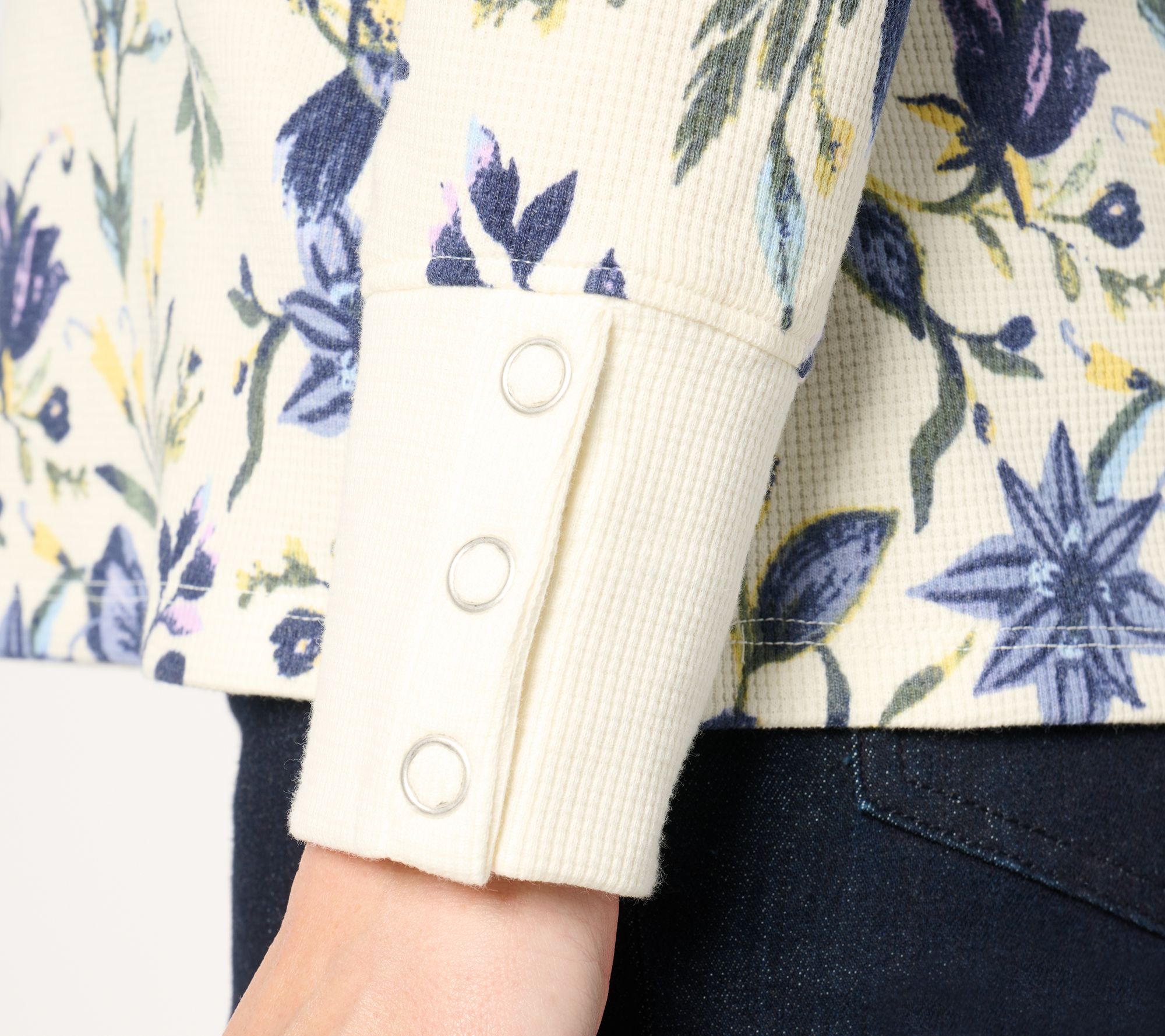 Plans not set in stone? Permission to waffle around in this comfy-cozy knit top. Undo the cuffs and roll up your sleeves when it's time to bake with the kiddos, take on a craft project, or simply relax in the sunshine. Hook-and-loop closures on both shoulders help make for easier dressing (and undressing) routines with this adaptive design. From Denim & Co.® Fashions.