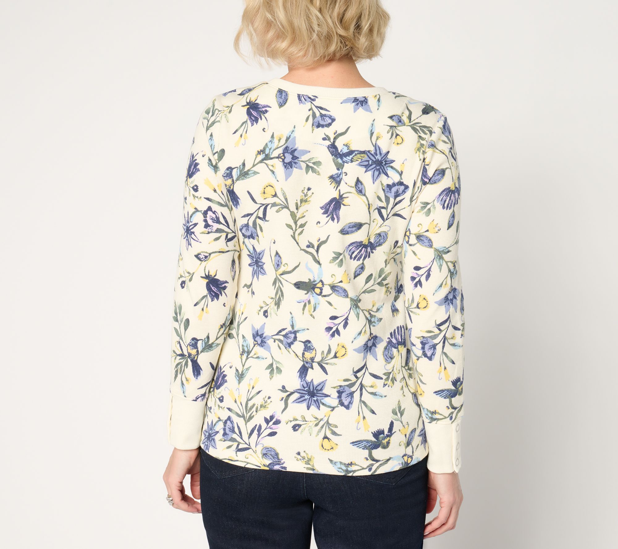 Denim & Co. Adaptive Waffle Knit Long-Sleeve Button-Cuff Top
