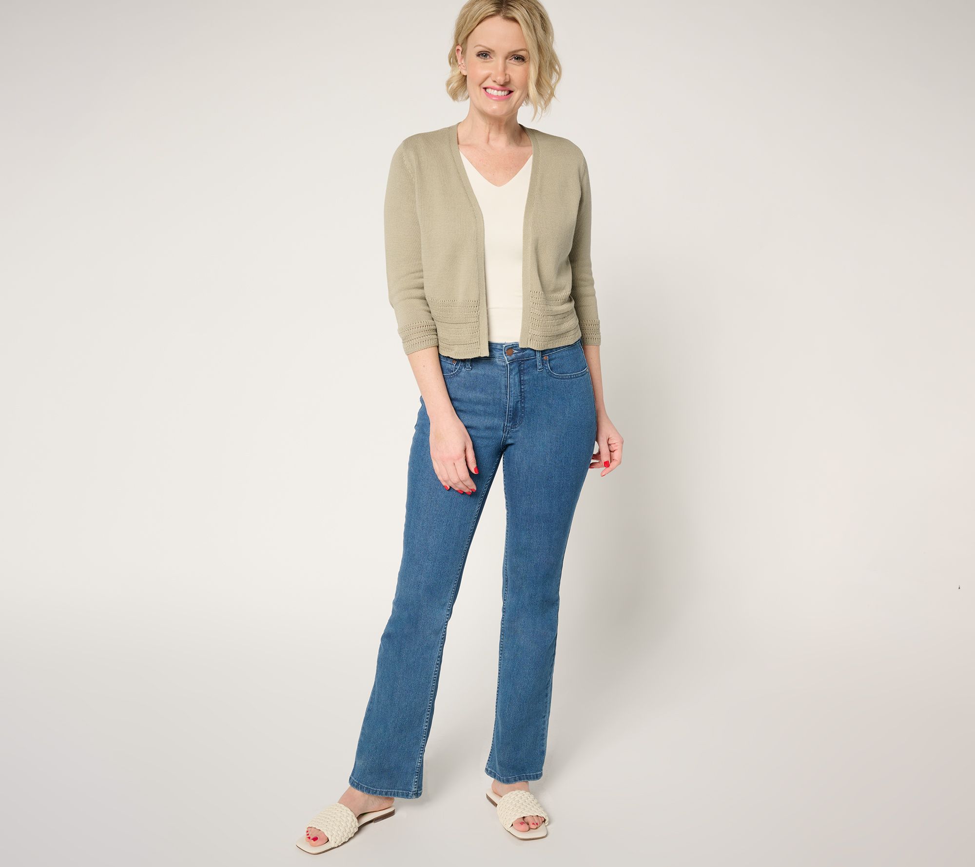 Update your closet essentials with this open-front shrug cardigan. Perfect for layering, this seasonless staple offers a touch of sophistication to any look. From Denim & Co.® Fashions.
