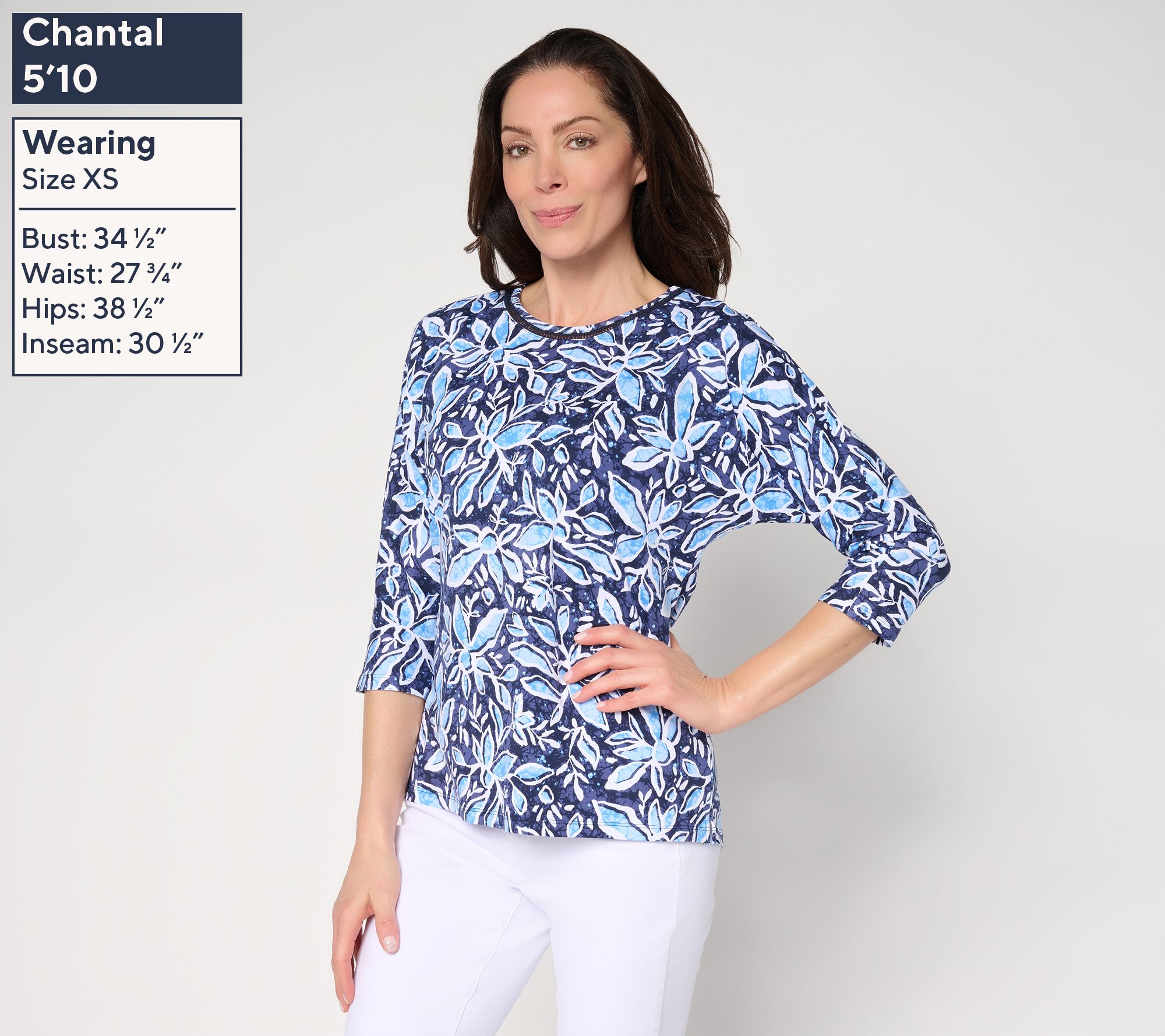 Denim & Co. Beach Floral Printed Beach Jersey 3/4 Sleeve Top