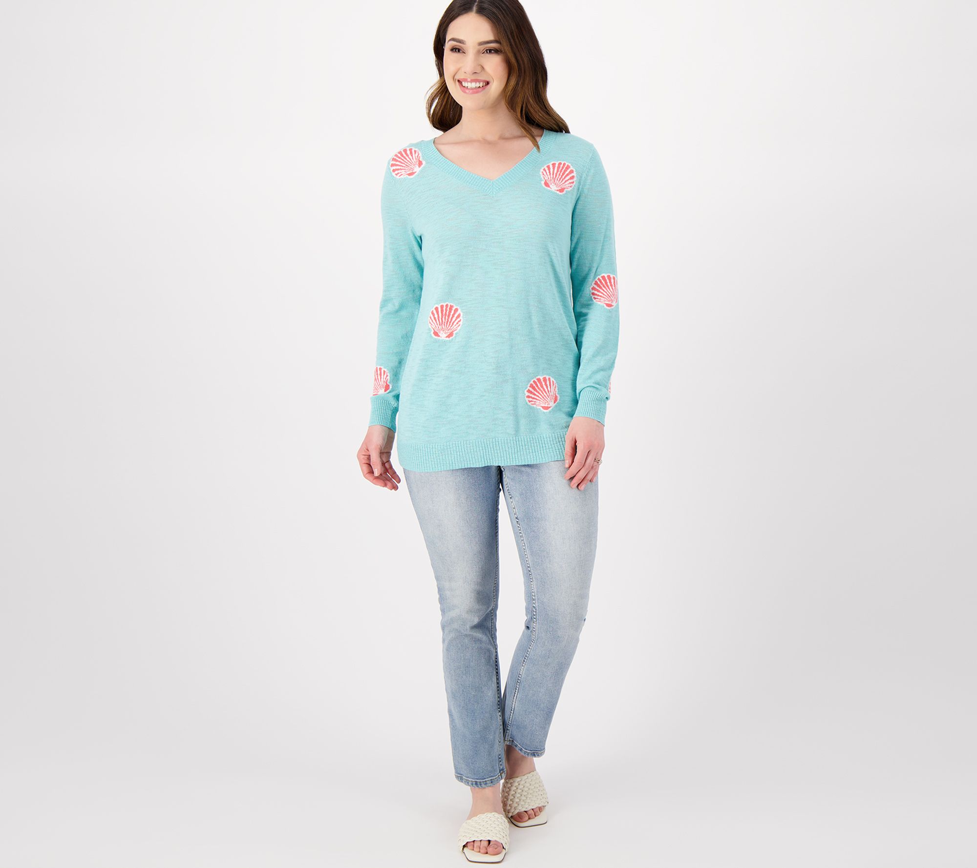When the breeze rolls in from the ocean (or the air conditioner), reach for this too-cute sweater. From Denim & Co.® Fashions.