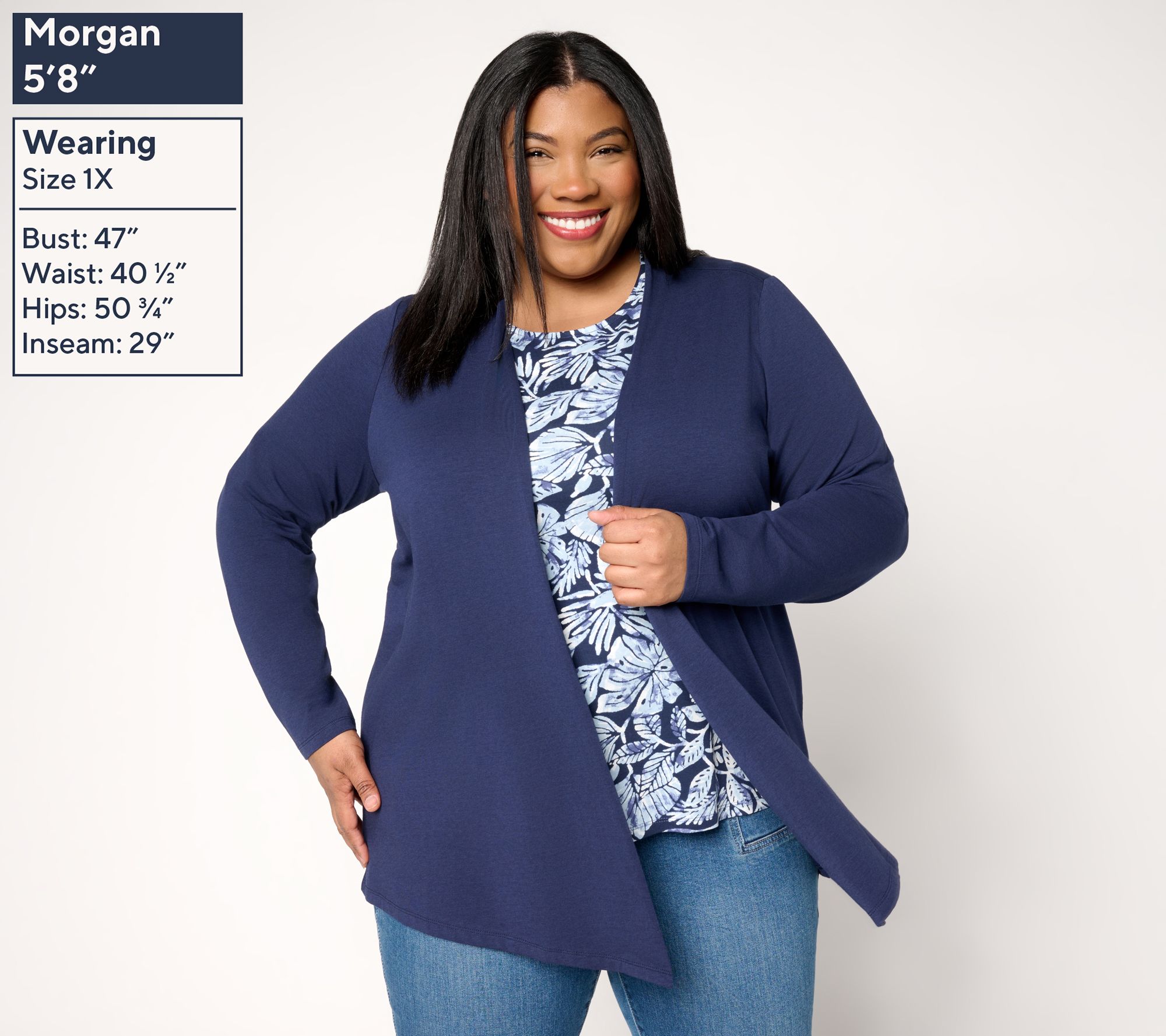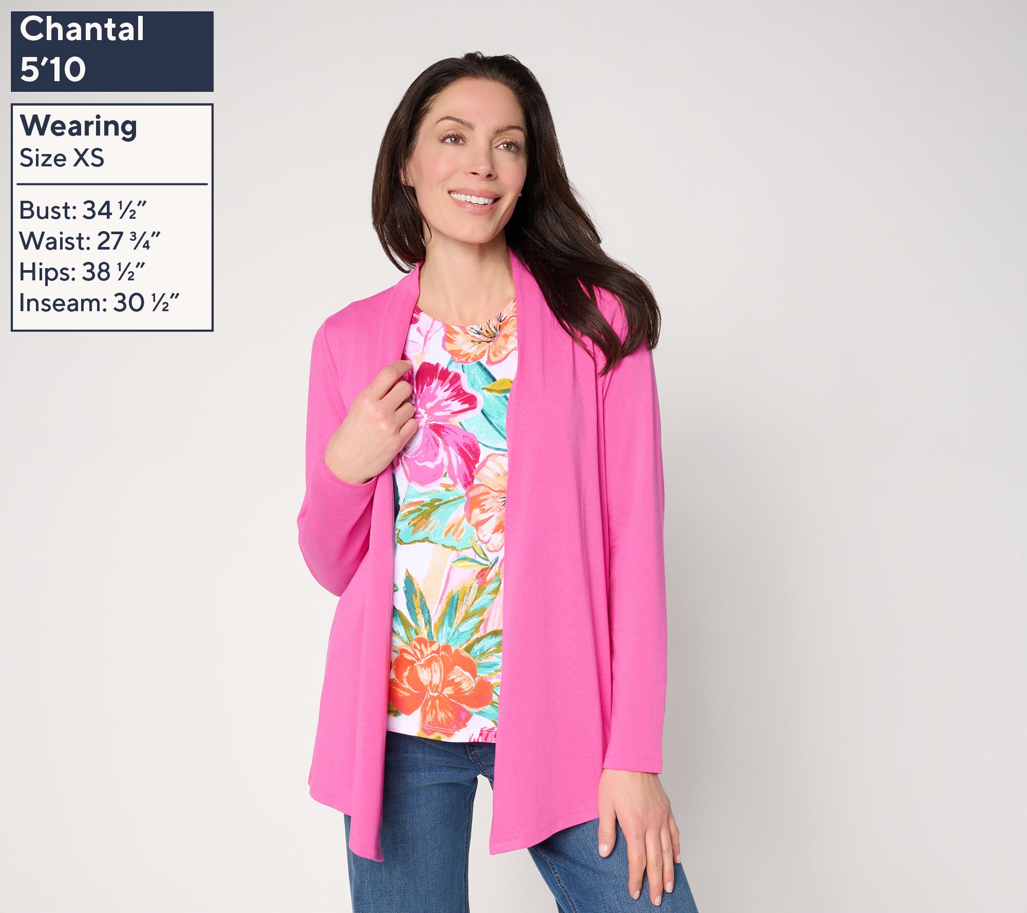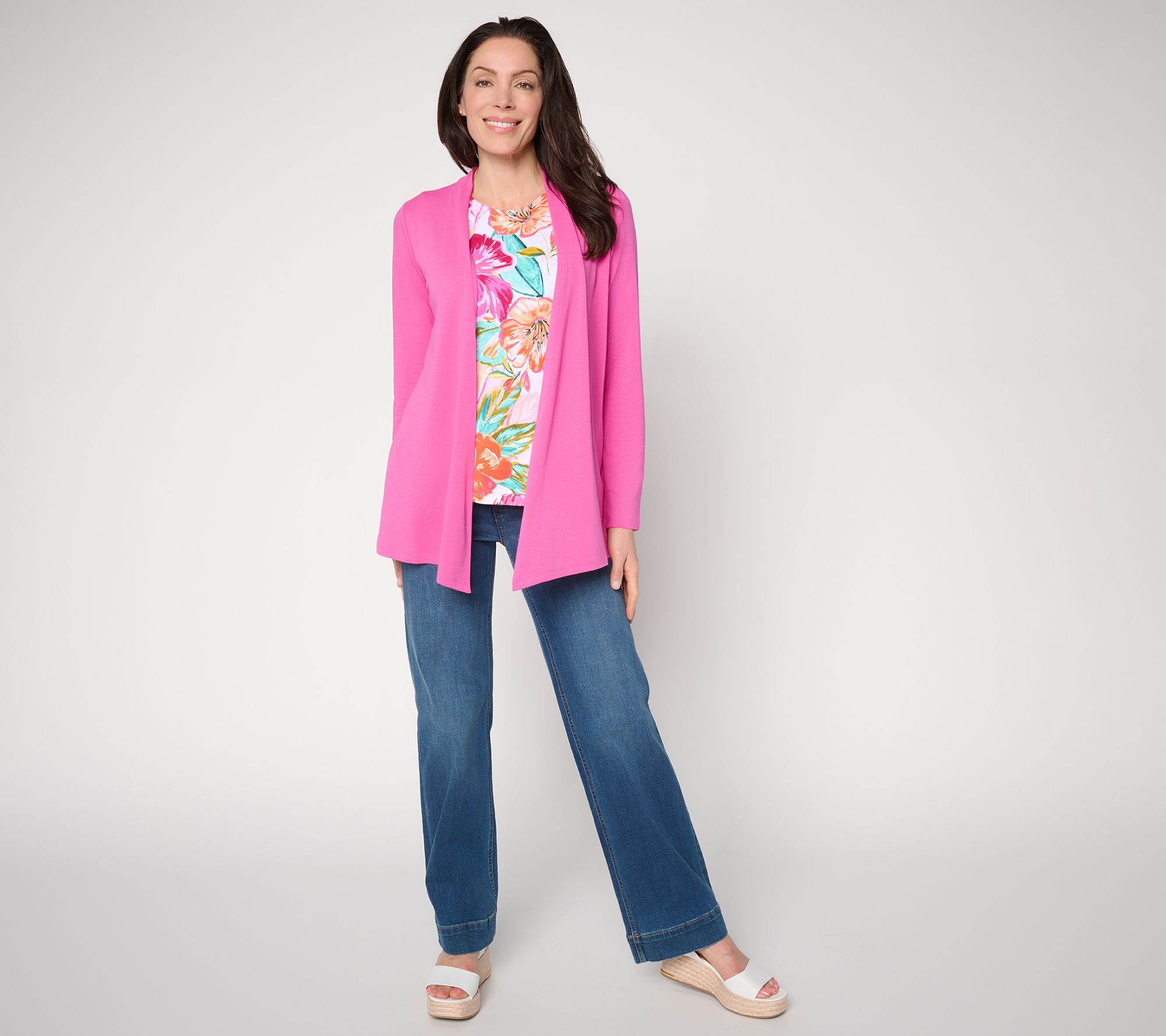 Sunlit afternoons or cool mornings, this Beach Jersey set keeps you comfortably coasting through every sea-sunable moment (vacation, we're ready!). The open-front cardigan with gentle shirring flows over the cheerfully printed tank, offering versatile comfort whether layered up for appointments or styled together for a coastal gathering. From Denim & Co.®.