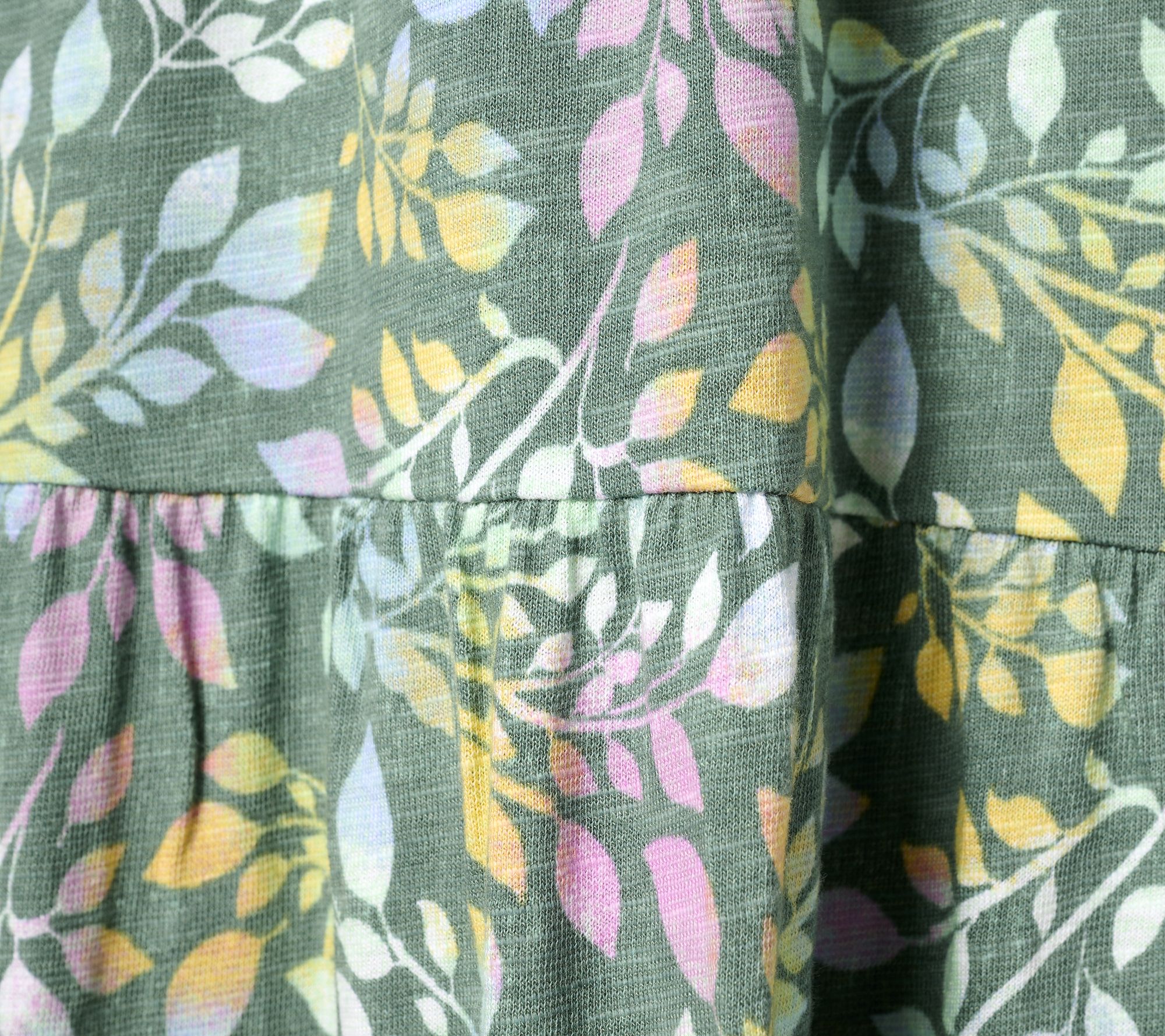 • Features: allover print, scoop neck, sleeveless, tiered with slight shirring at seams, side seam pockets, slight shirring at tier seams, back neck patch at center back