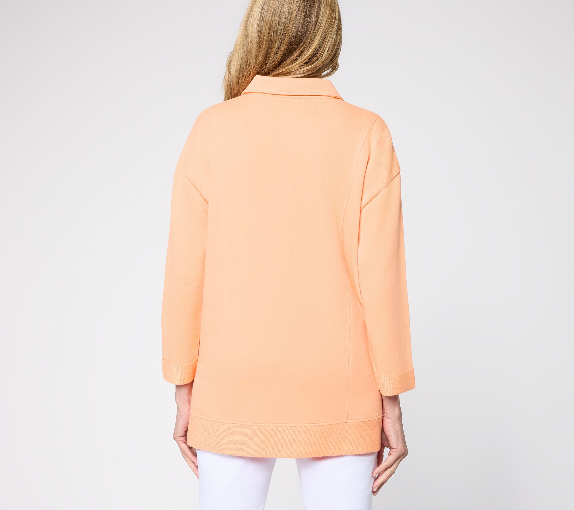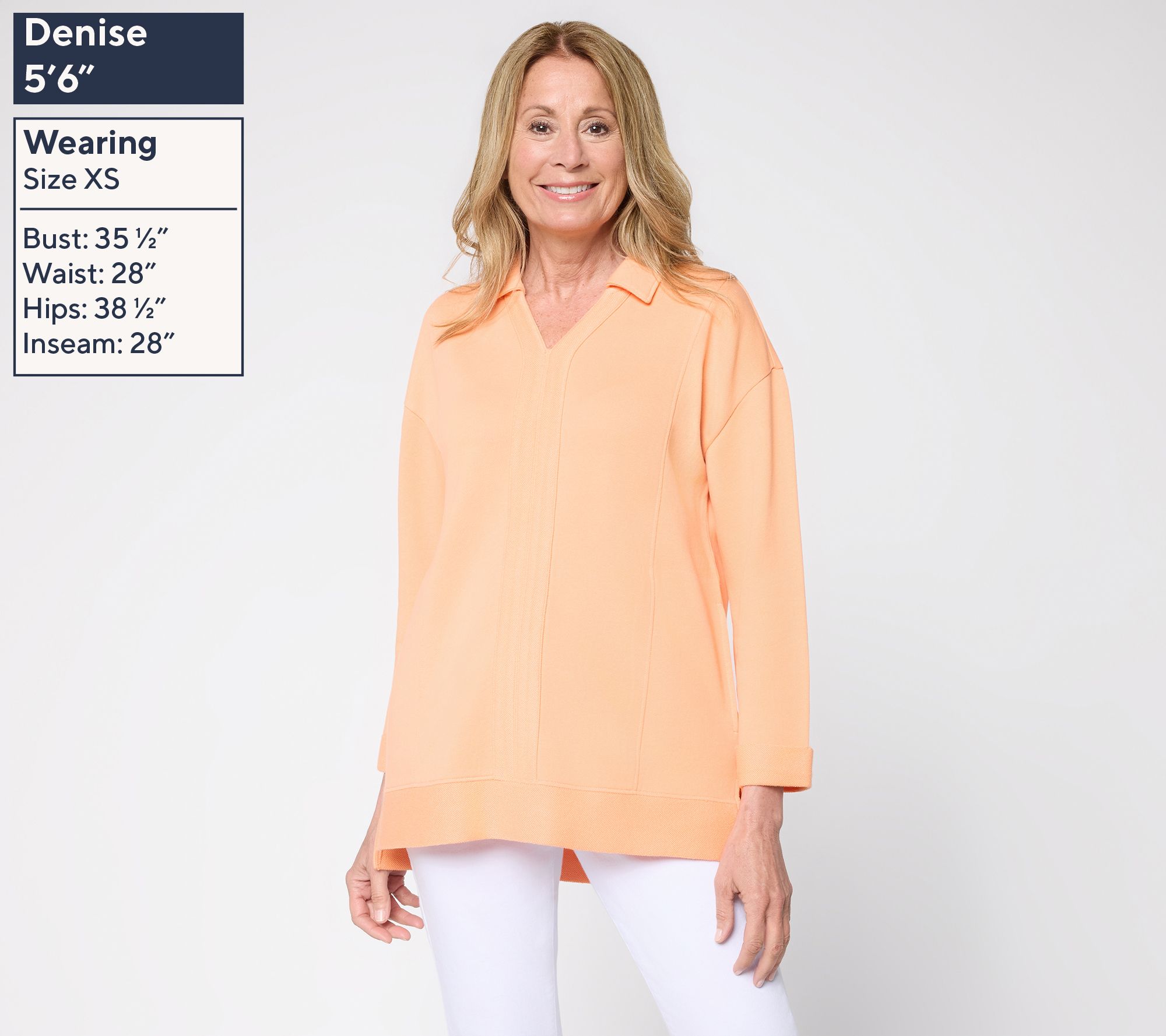 Just beachy! Whether you're strolling by the shore or relaxing at home, the Tideline terry tunic delivers casual ease with style. The step hemline, split neck, and cozy knit make it a versatile choice for breezy afternoons and weekend lounging. From Denim & Co.® Fashions.