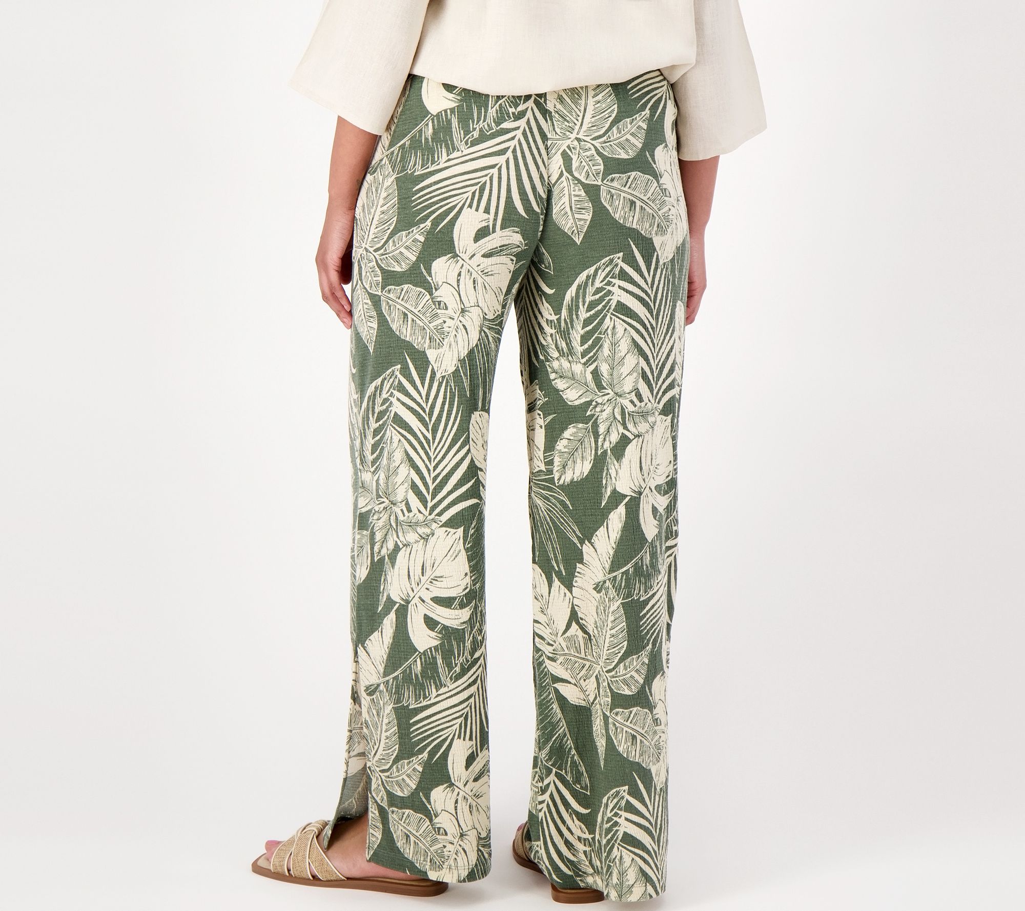 Denim & Co. By the Beach Printed Knit Gauze Regular High Slit Pant