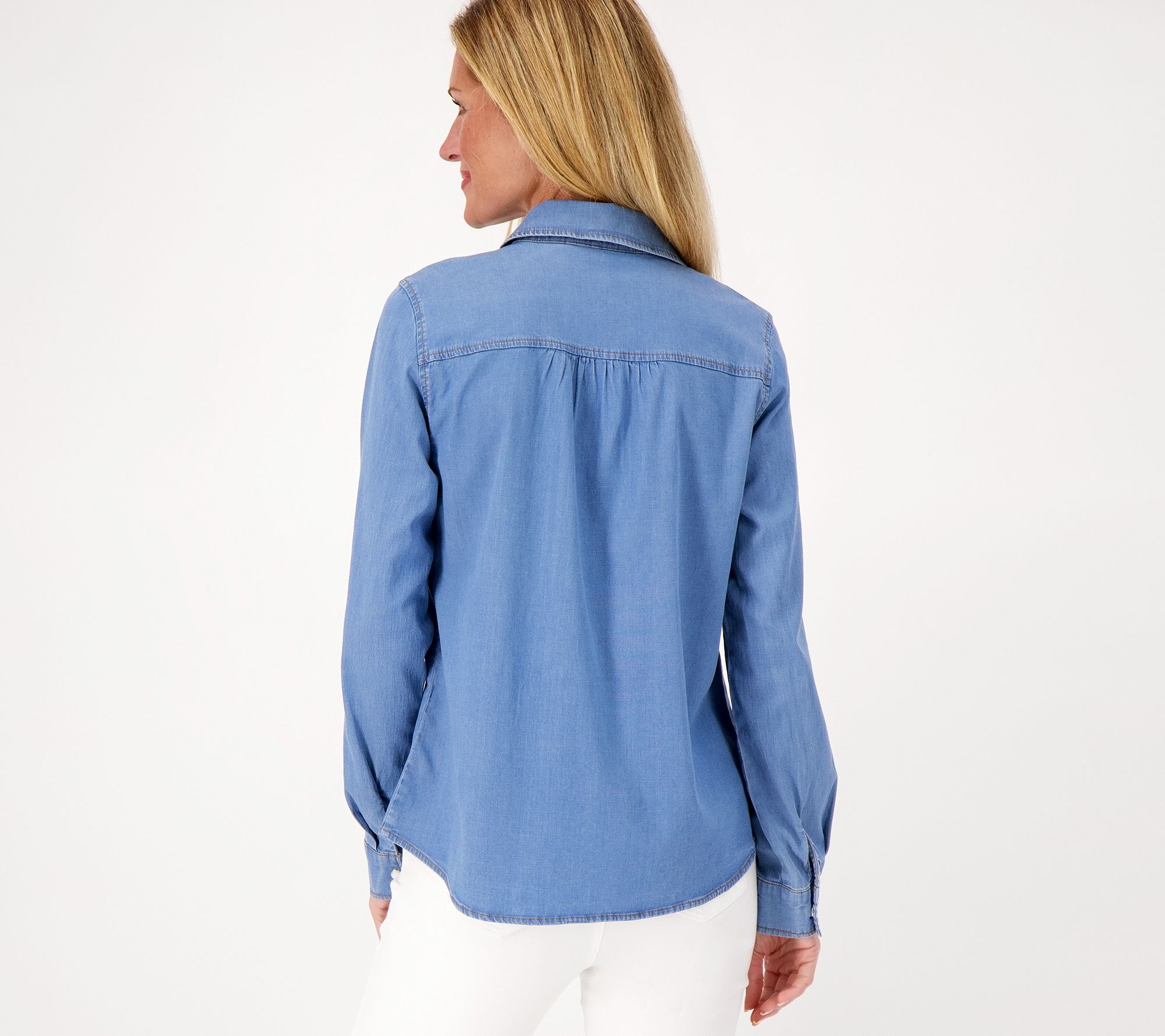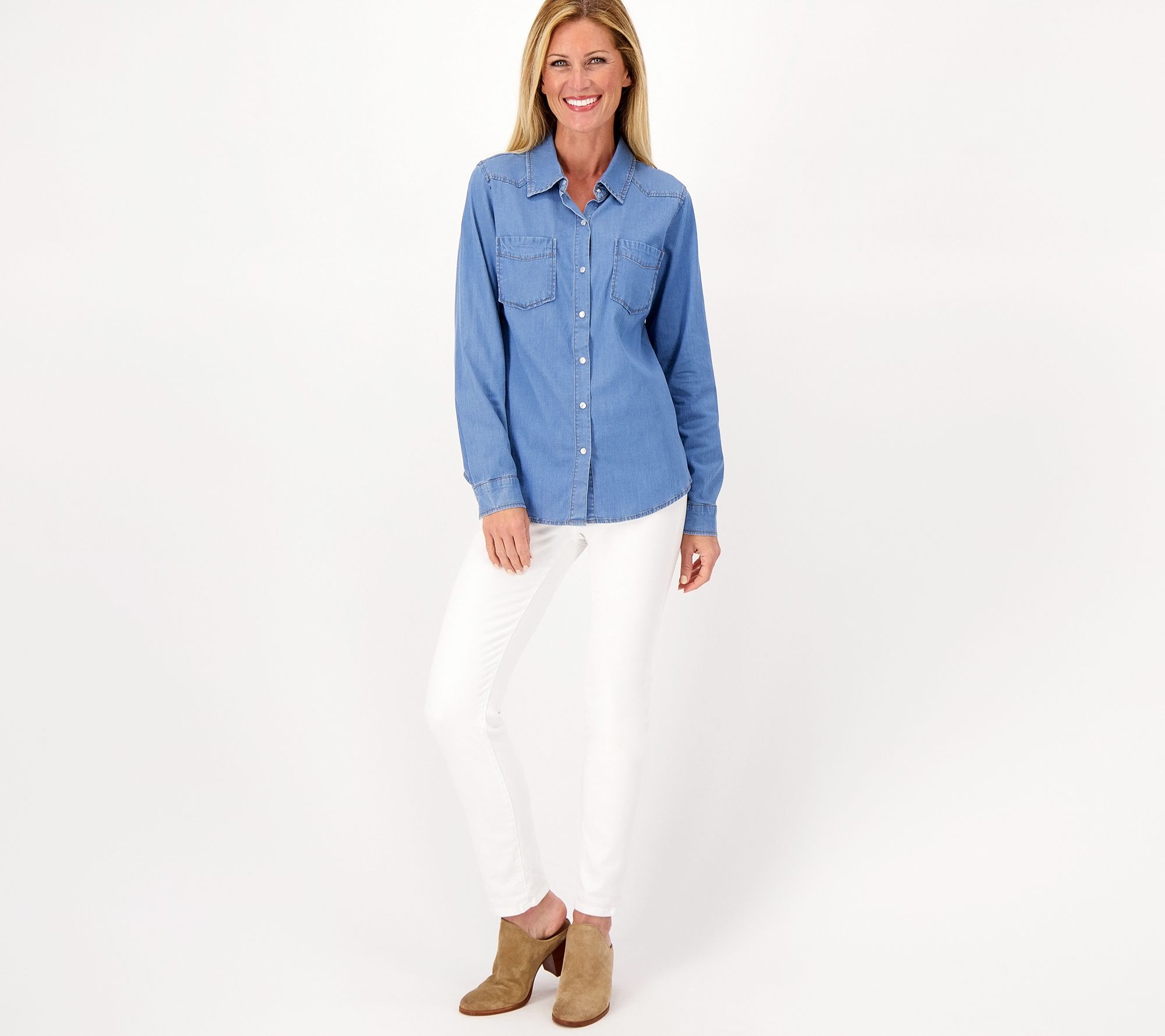 This button-front shirt completes those fab fall 'fits. Match it with jeans, your favorite leather boots, and a scrumptious pumpkin spike latte before you go apple picking. From Denim & Co.® Canyon RetreatTM.
