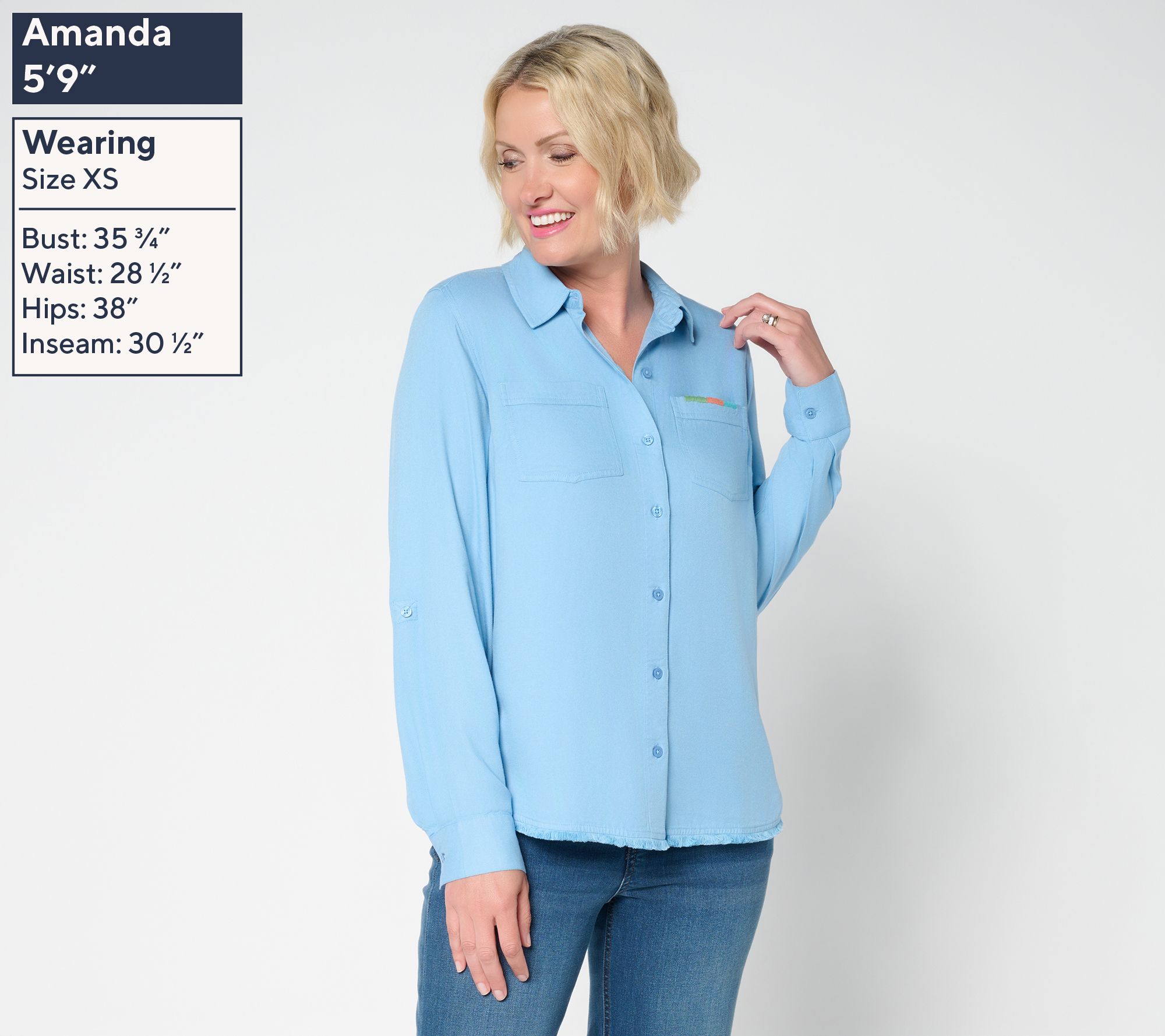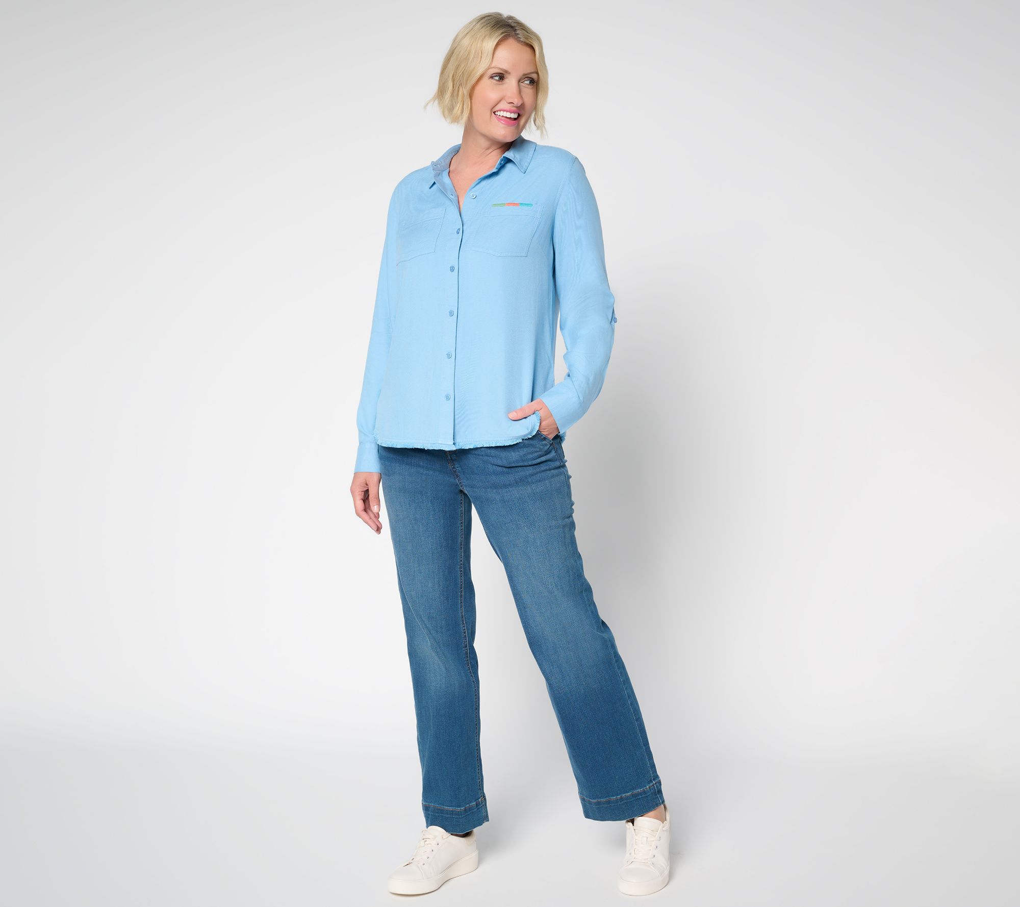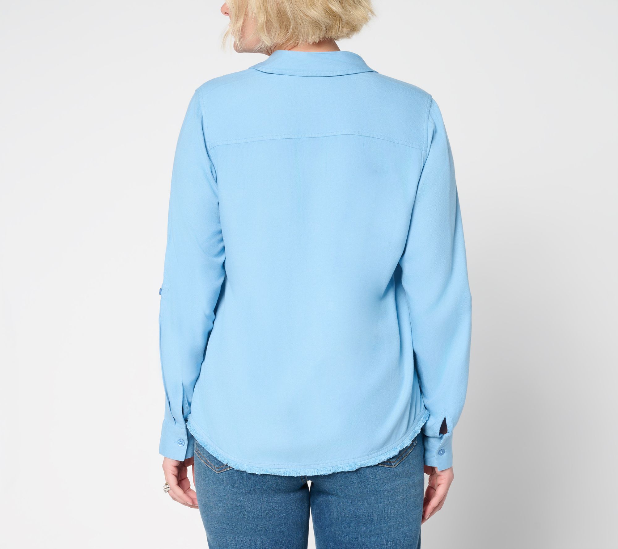 Got a closet full of neutrals? This Canyon RetreatTM twill shirt welcomes in some color -- fresh for everything from farmer's market strolls to weekend meetups with friends. Button up, roll the sleeves to 3/4-length, and show off the decorative stitching that adds a fresh twist to a classic favorite. Try it layered over a tee or tucked into your best denim. From Denim & Co.® Fashions.