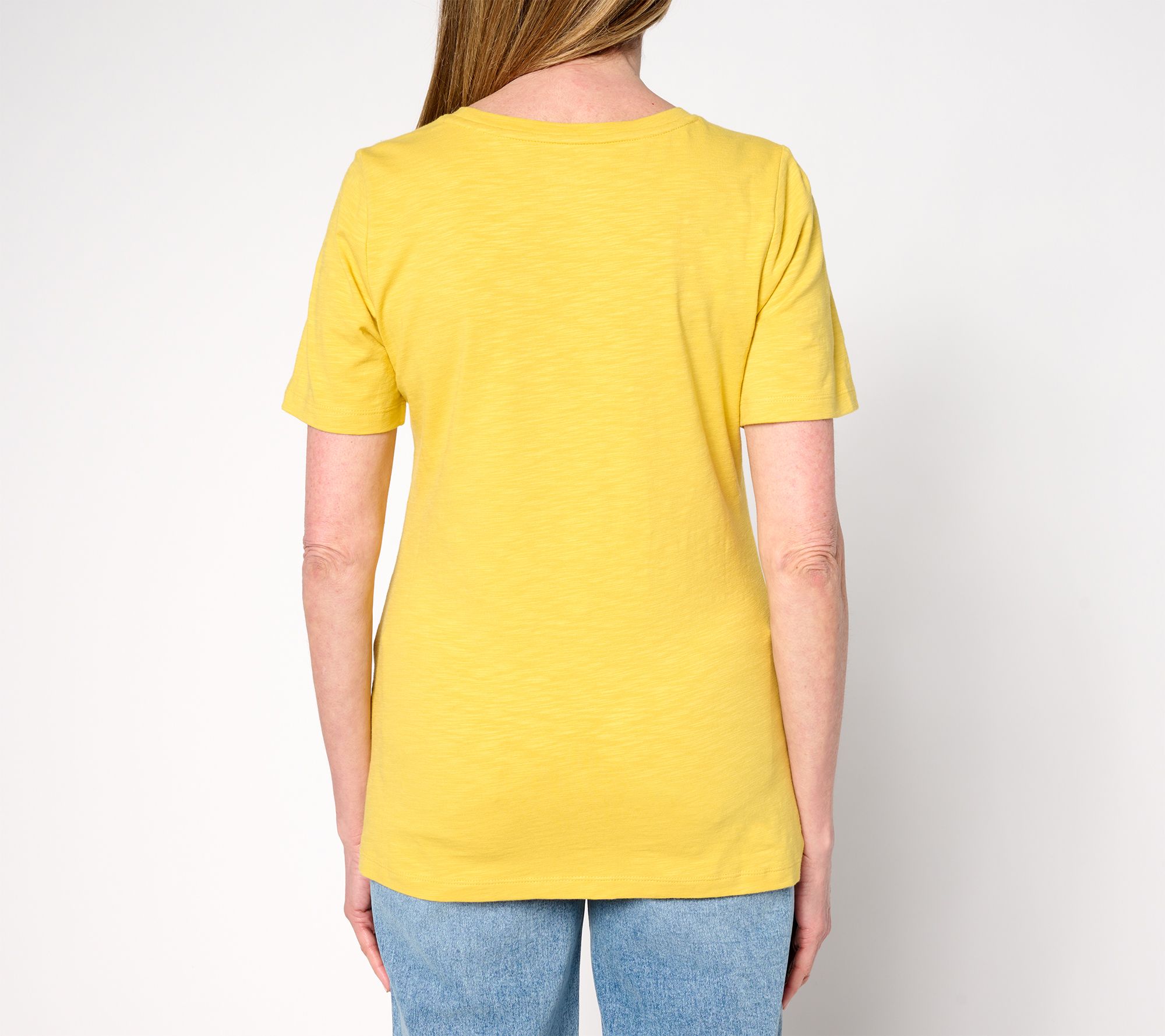 Plant the seeds of a sweeter everyday wardrobe with this set of two tulip-hem tops in textured stretch cotton. From Denim & Co.® Fashions.