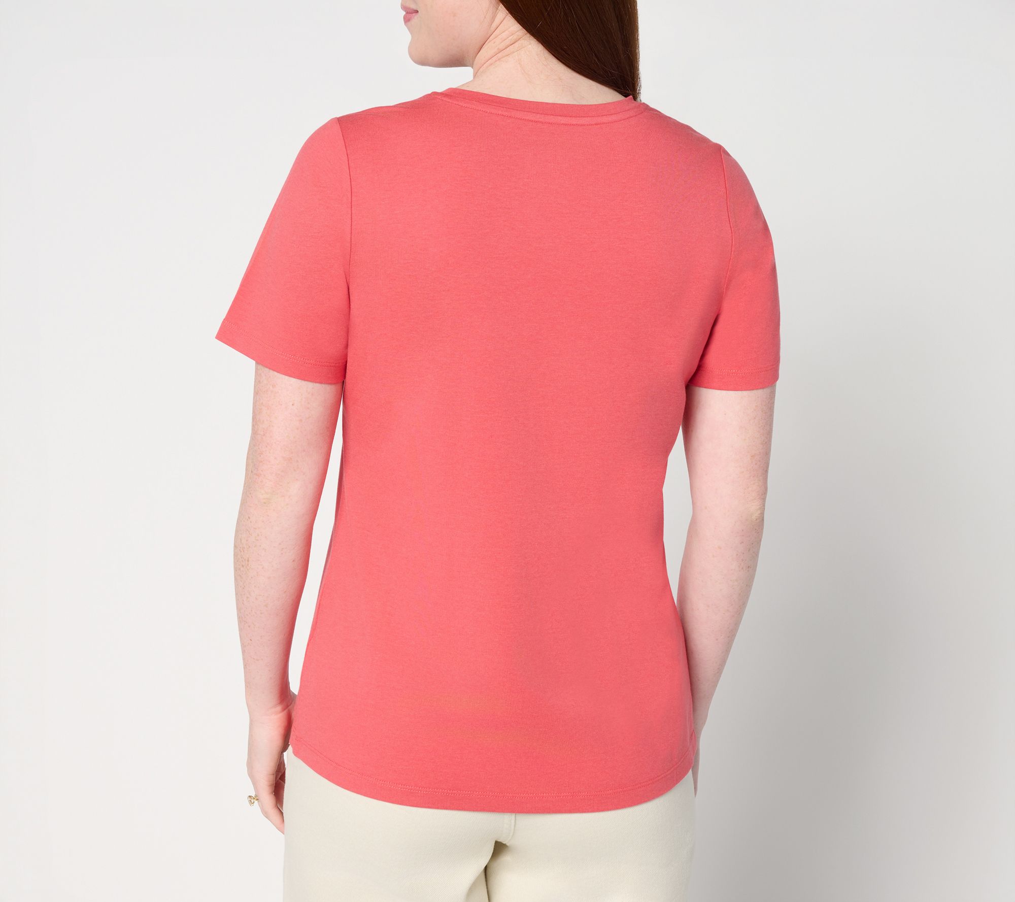 Find your new everyday go-to with this cool-to-the-touch knit top, perfect for summer walks and relaxed weekends. Smooth cotton-modal fabric feels light and soft, while the easy round neckline and short sleeves pair well with jeans, trousers, or shorts. Style tip: layer under your favorite cardigan on chilly days. From Denim & Co.®. Fashions.