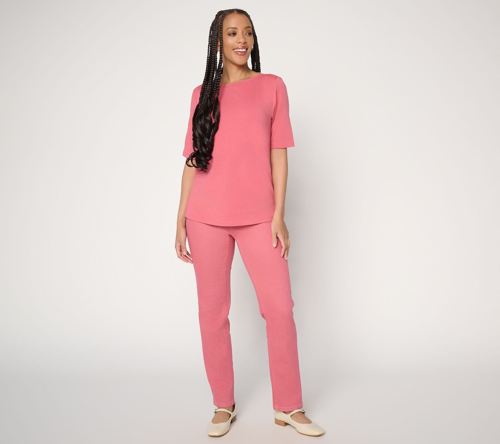 Denim & Co. Essentials Favorite Jersey Boat Neck Elbow Sleeve Top