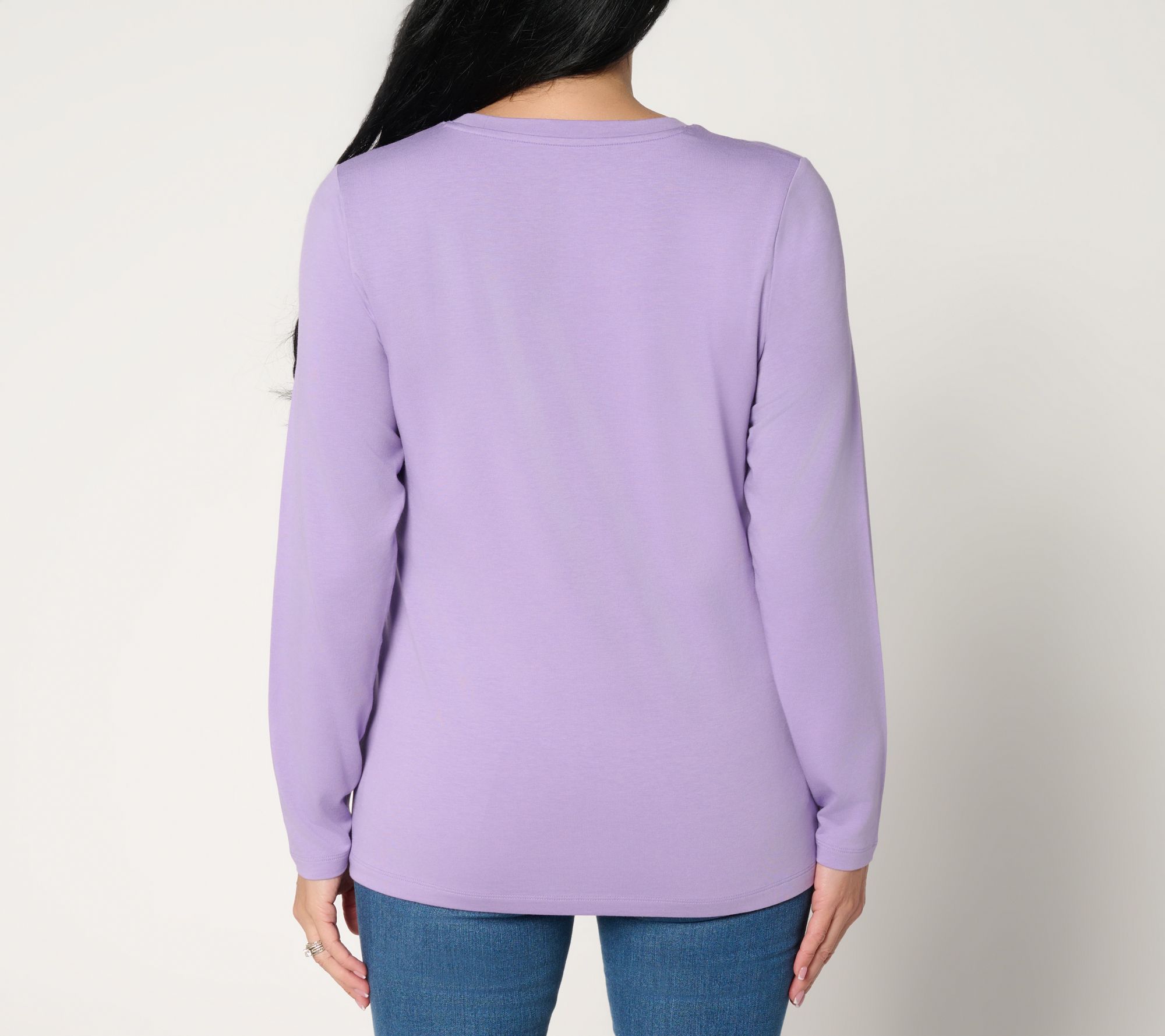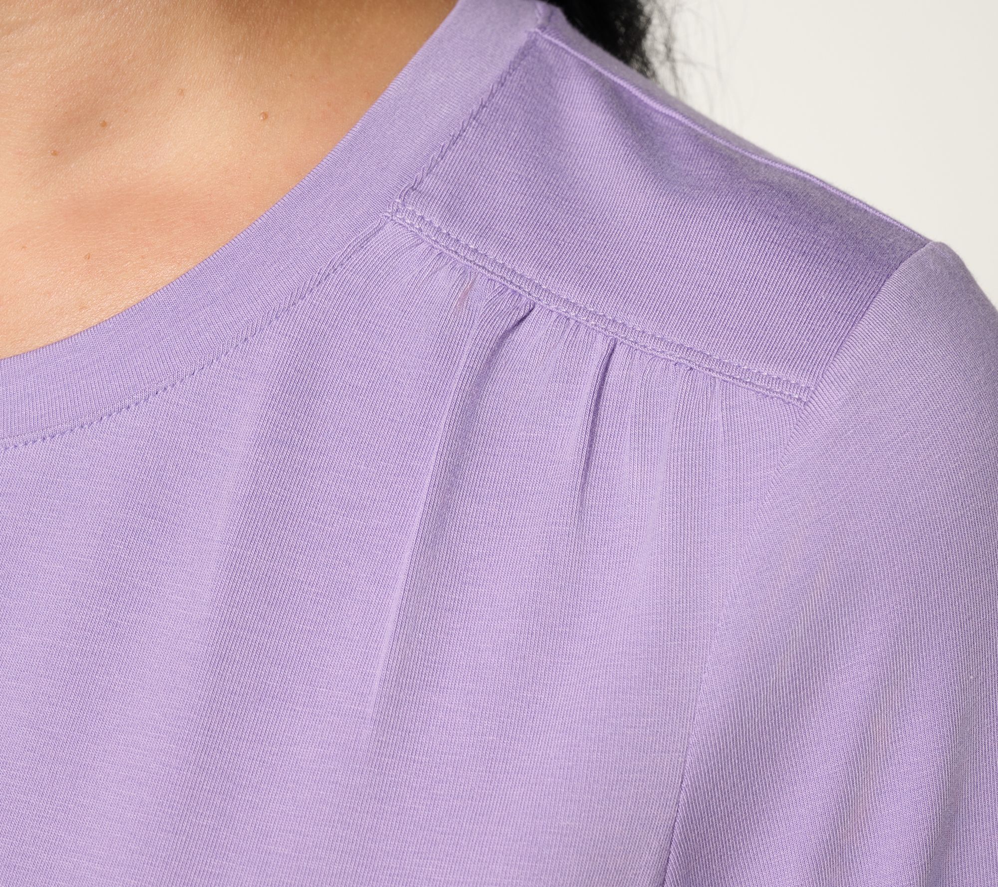 When your schedule is calling for comfort but you want to keep things stylish, this round-neck top from Denim & Co. delivers. With soft Favorite Jersey knit and thoughtful ruching at the shoulders, it's the kind of piece that works for morning errands, weekend plans, or curling up on the couch. Try it on its own or layered under chilly-weather cardigans. From Denim & Co.®. Fashions.
