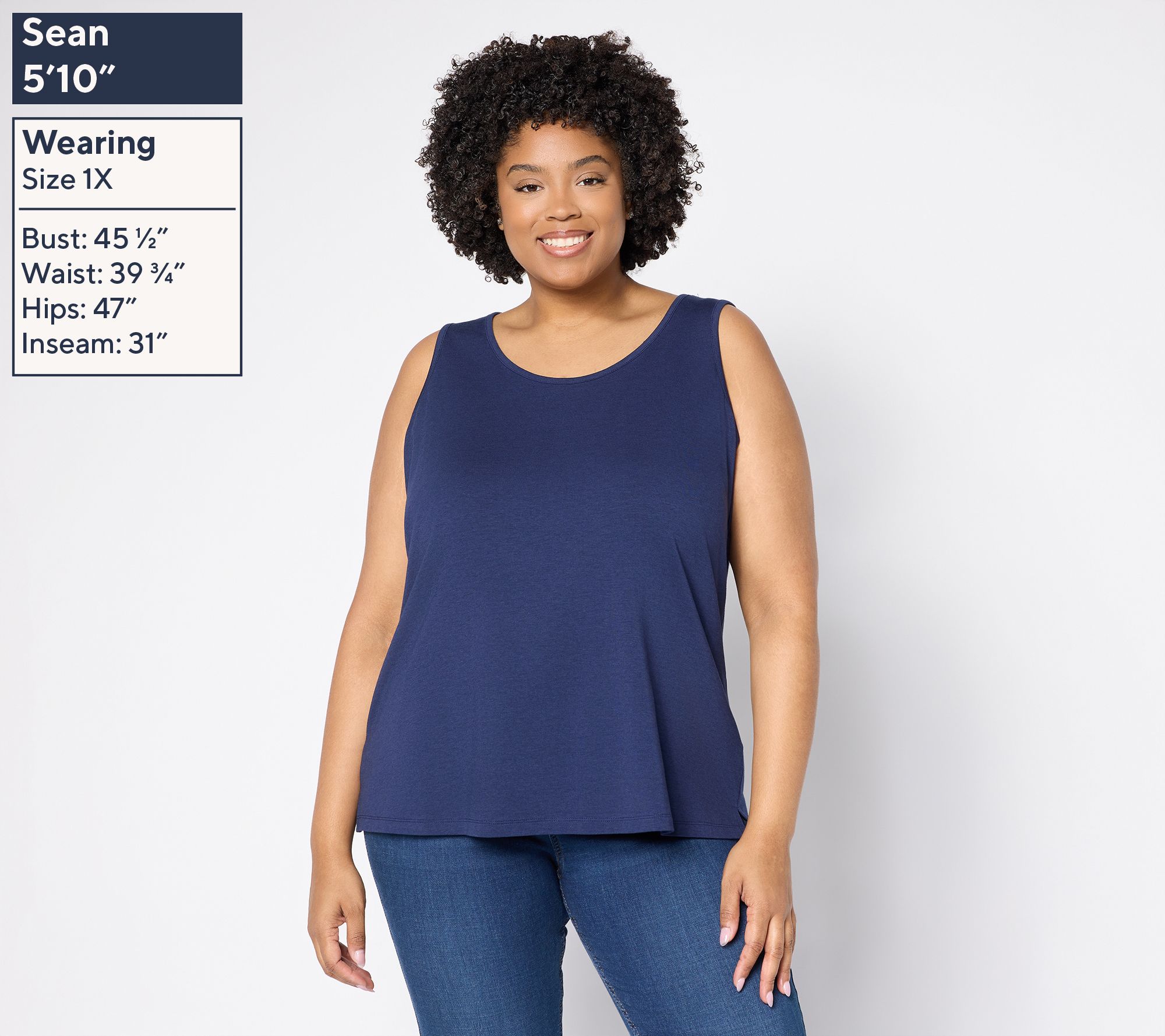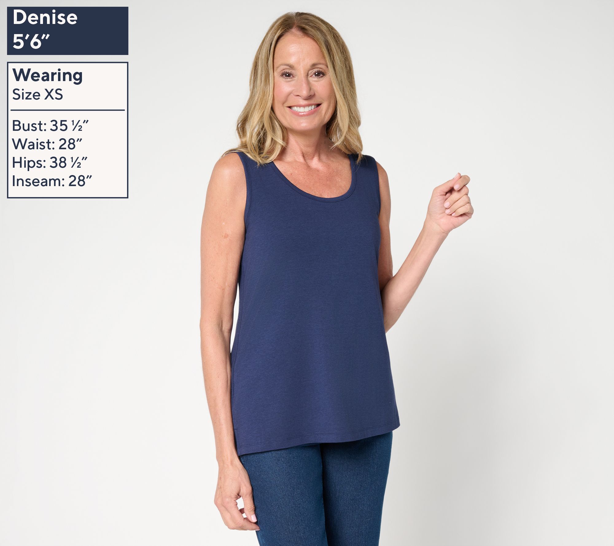 No flimsy tanks here! This scoopneck tank top in soft, substantial Favorite Jersey is a reliable go-to for mornings on the move, workdays, or layered looks at dinner. Stock up on one (or five). From Denim & Co.® Fashions.