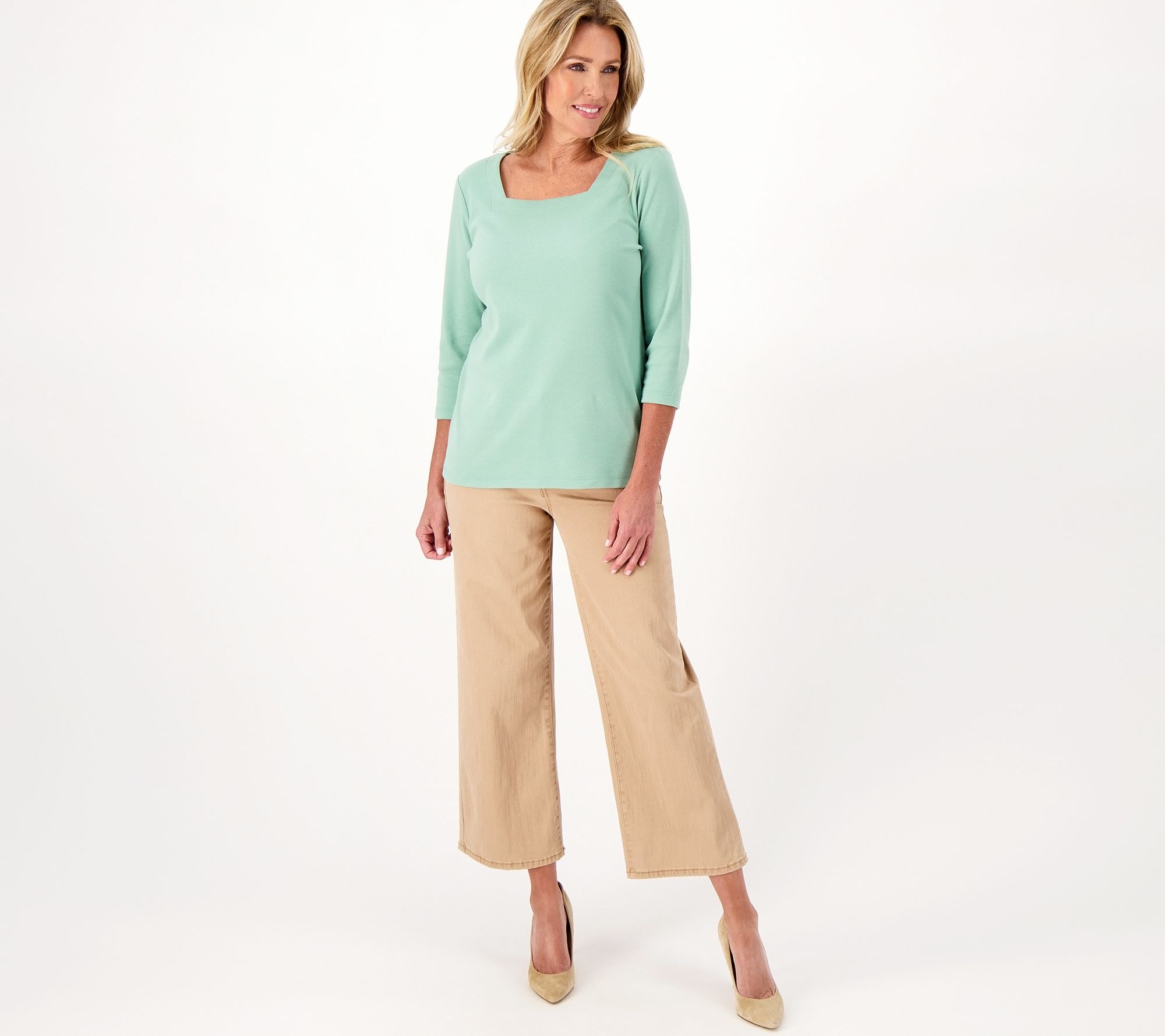 Denim & Co. Essentials Interlock Square Neck 3/4 Sleeve Top