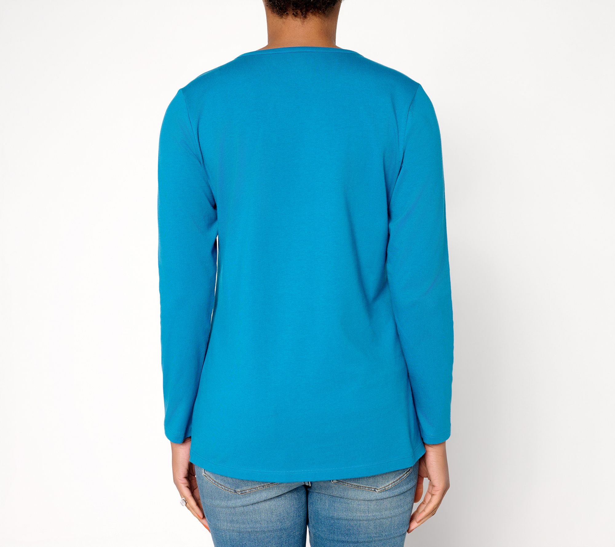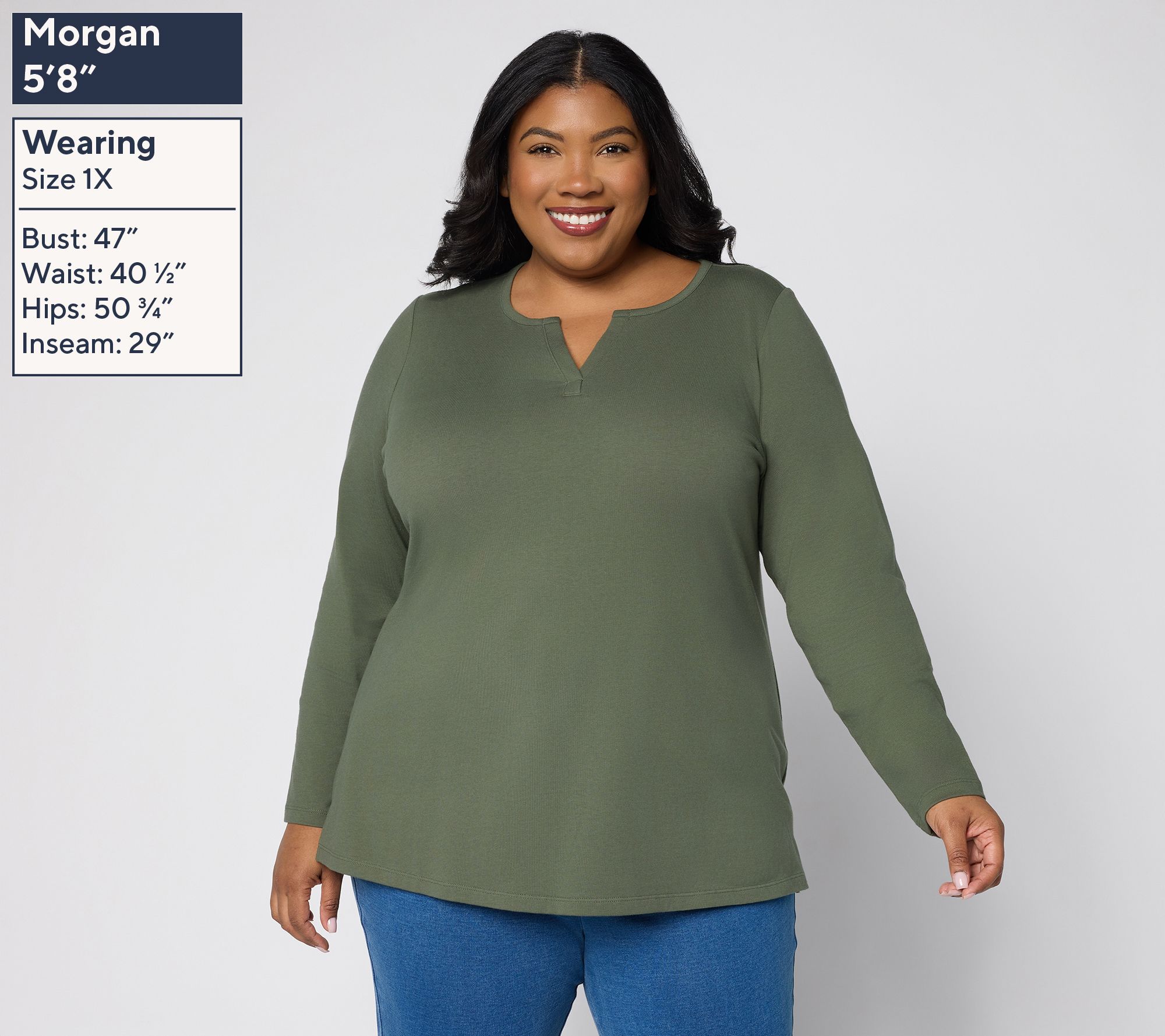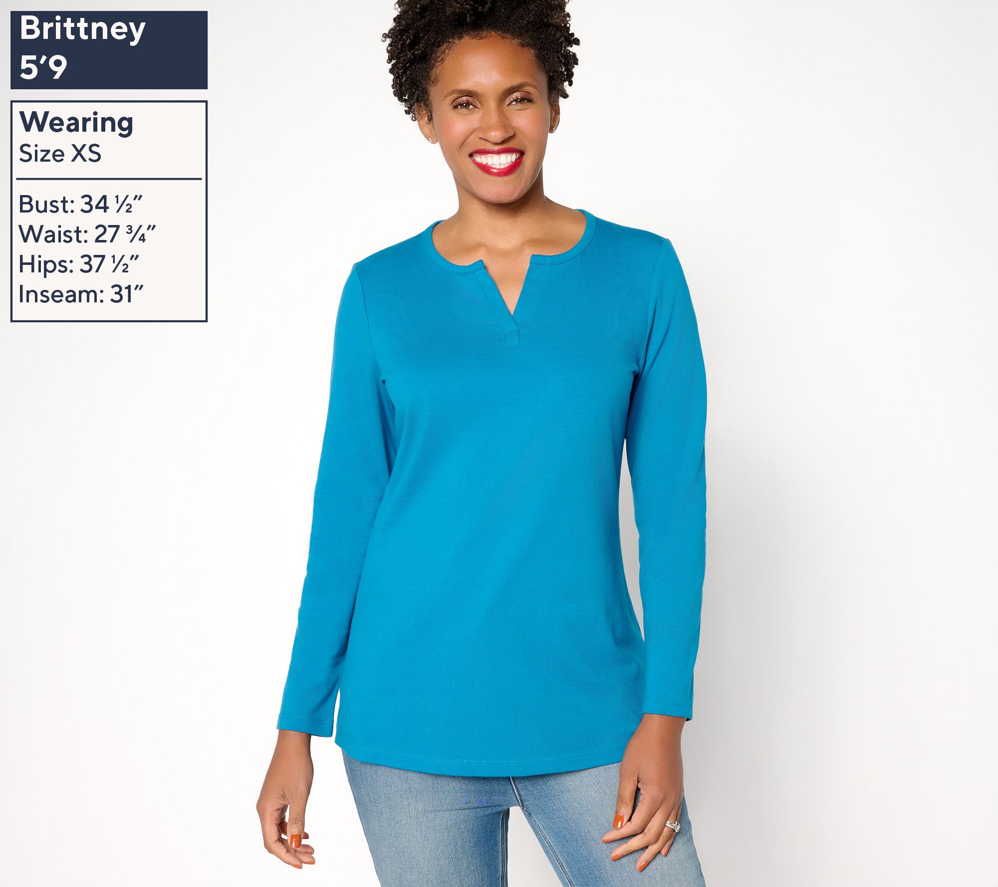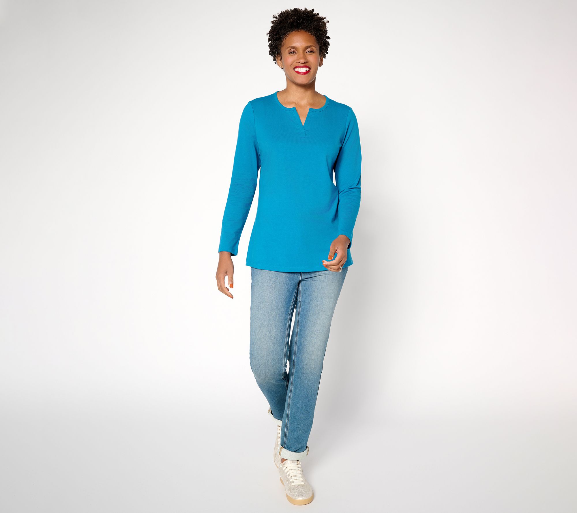 Meet your new everyday go-to: this Perfect Jersey tunic. The smooth operator makes busy mornings and relaxed afternoons a breeze. The Y-neckline, long sleeves, and side slits offer a wear-anywhere style, ready to pair with all your favorite pants for errands or lounging at home. From Denim & Co.® Fashions.