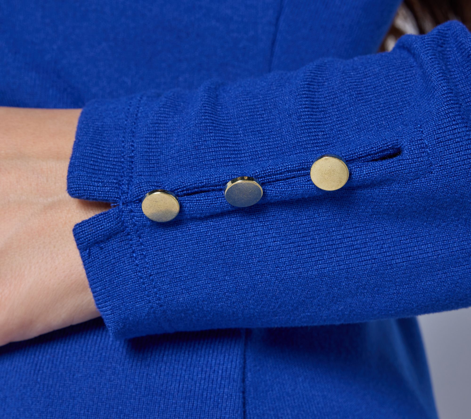 • Features: turtleneck, long sleeves with non-functional button details, straight bottom hem