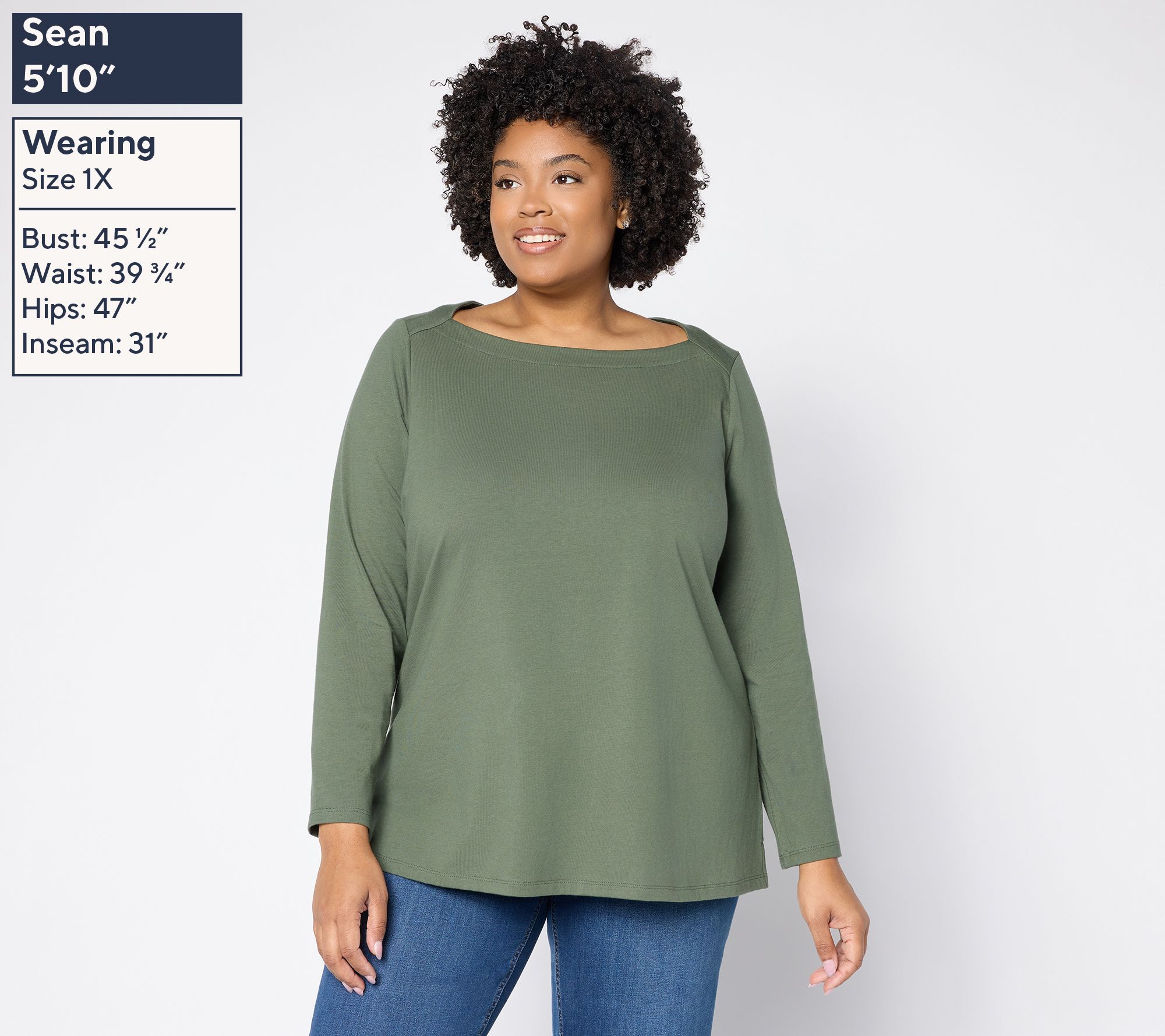 Easy mornings, relaxed afternoons, or catch-up conversations with friends -- this boatneck tunic offers classic styling for wherever your day takes you. The soft knit, long sleeves, and side slits at the straight hem deliver comfort and movement you'll reach for again and again. From Denim & Co.® Fashions.