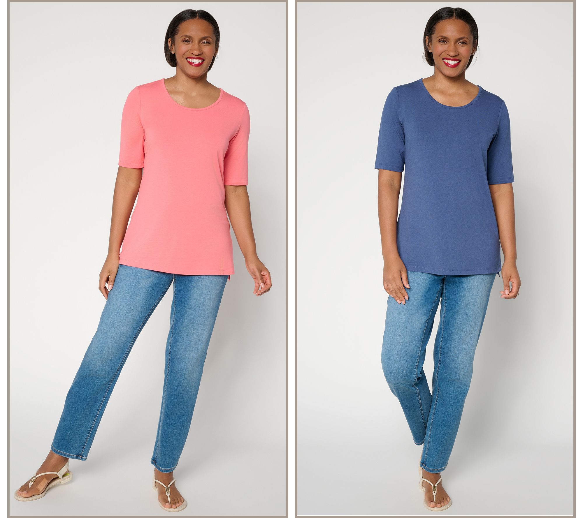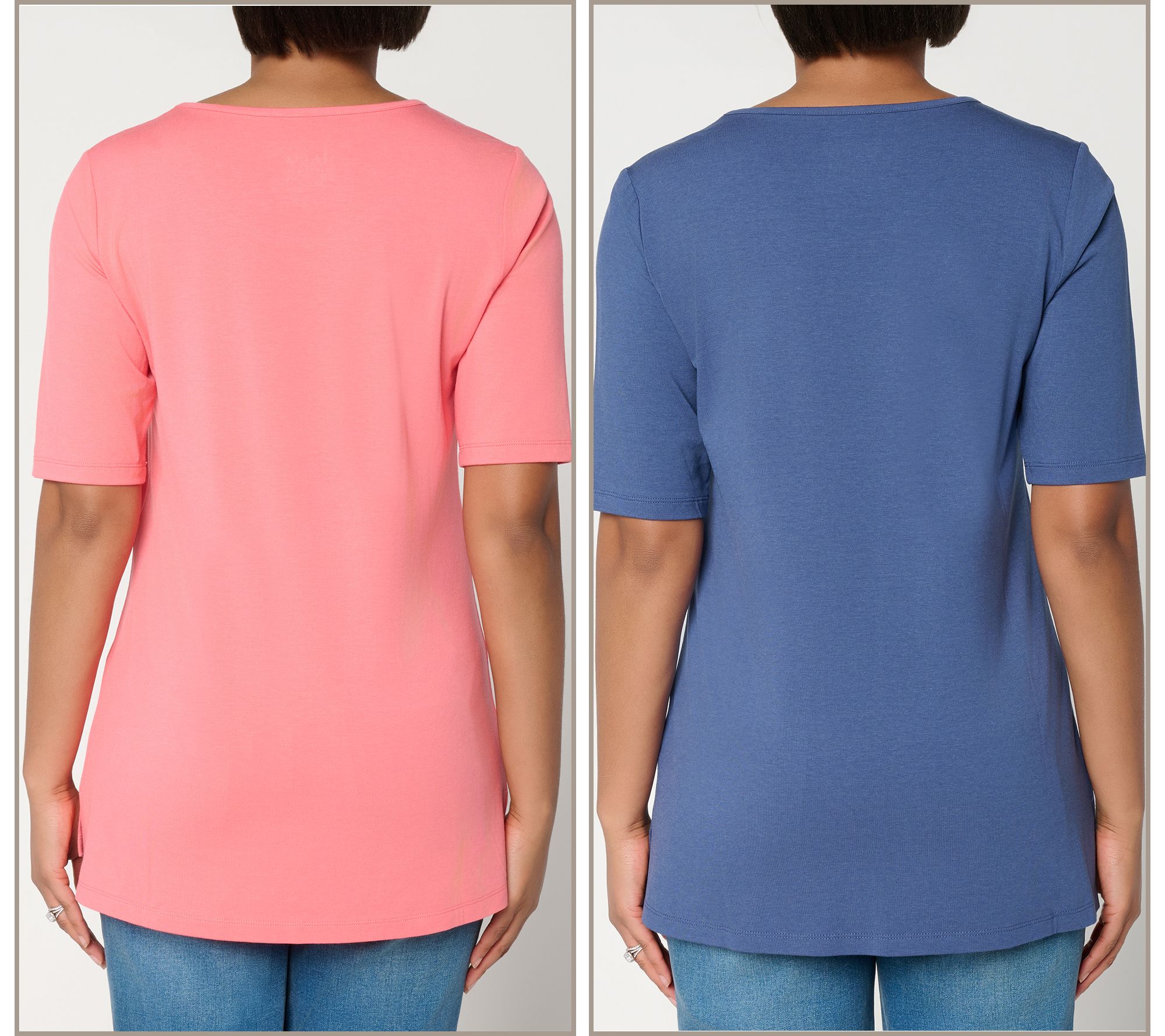 So Soft Jersey tunics make every day feel a little more put together, whether you wear them solo with leggings for weekend life or layer them under a cardigan at the office. This two-pack brings you practical bracelet-length sleeves and a comfy not-too-tight/not-too-loose shape for effortless pairing all week long. From Denim & Co.® Fashions.