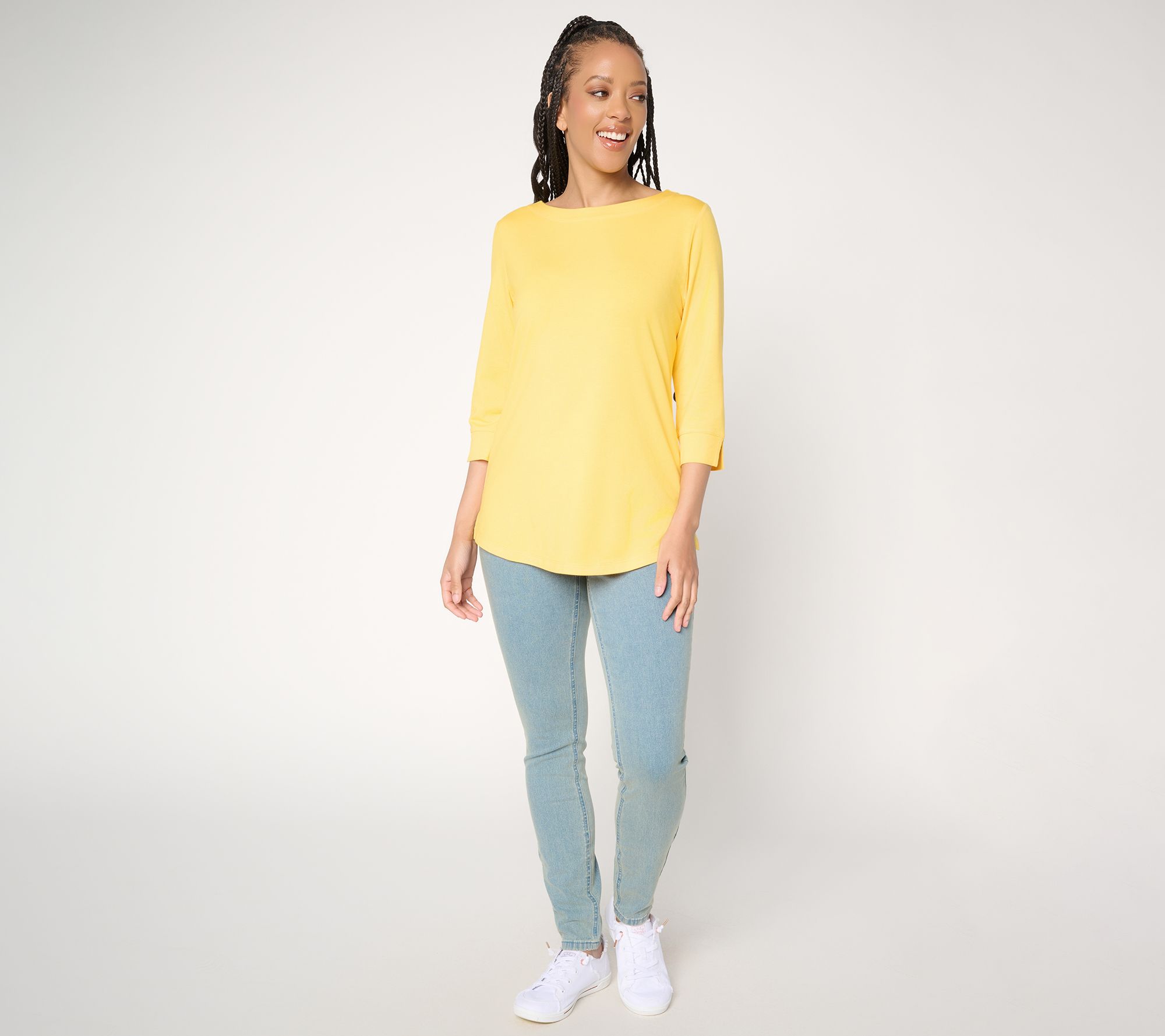 Denim & Co. Essentials So Soft Jersey 3/4 Sleeve Boat Neck Top