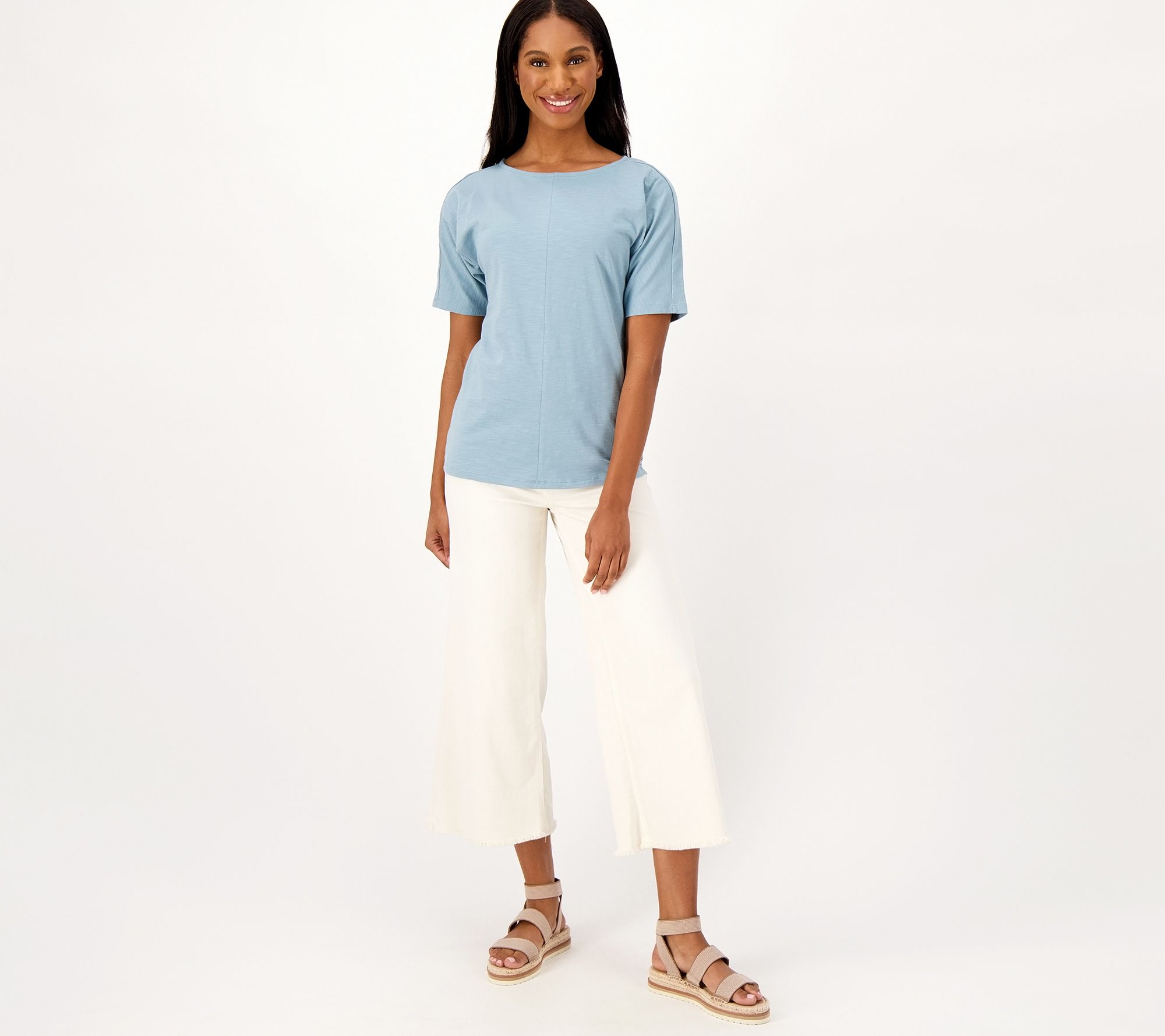 Give your basics a well-deserved refresh with this textured knit top with subtle front and back center seams and versatile elbow-length sleeves. From Denim & Co.® Fashions.